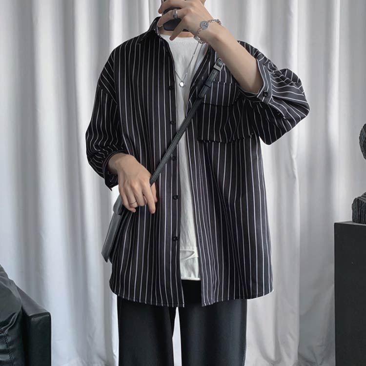 全2色×7サイズ ストライプ柄シャツ メンズファッション 早い者勝ち ブラック ホワイト M L XL 2XL 3XL 4XL 5XL