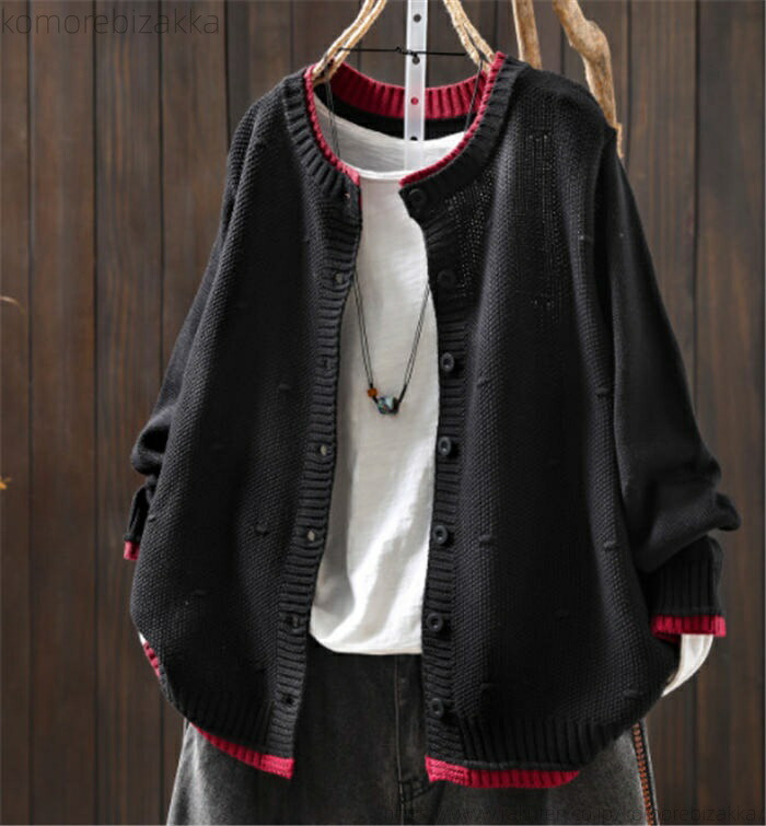 レディース 春 秋 可愛い配色 ダブル トップス カーディガン ボレロ 新作 黒 暗い赤 赤 紺色 ライトコーヒー ダークコーヒー ライトベージュ ダークベージュ ダークグレー