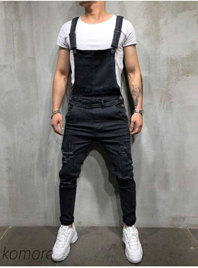 メンズ オーバーオール デニム ダメー オーバーオール 新登場! ライトブルー ブルー ブラック S M L XL 2XL 3XL