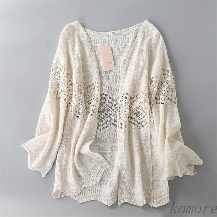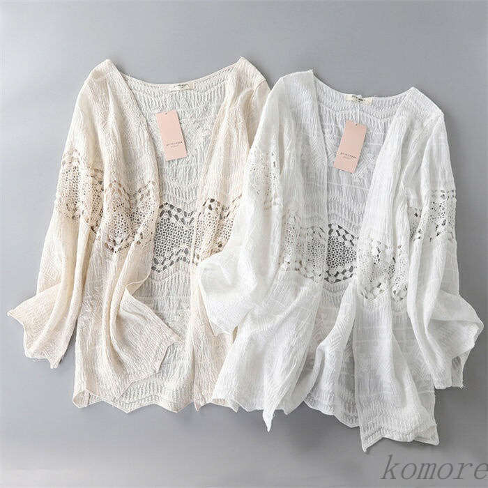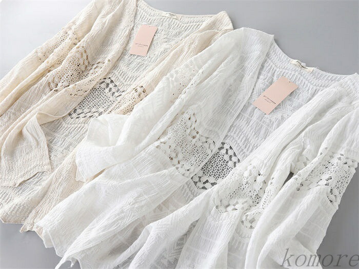 レディース 薄手 夏 透かし編み レー トップス カーディガン ボレロ 早い者勝ち ホワイト ベージュ