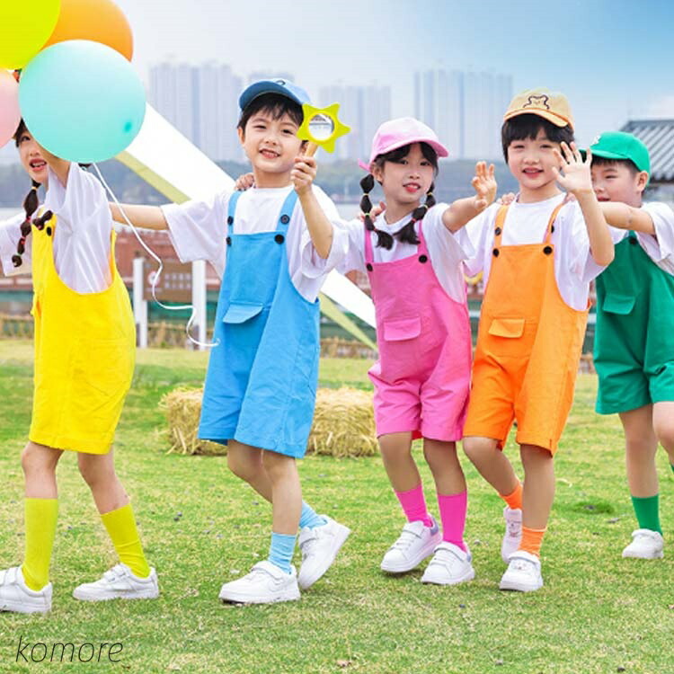 サロペットパンツ 3点セット 保育園 キッズ オーバーオール 新登場! ブルー オレンジ ピンク レッド イエロー グリーン パープル 100 110 120 130 140 150 160 170
