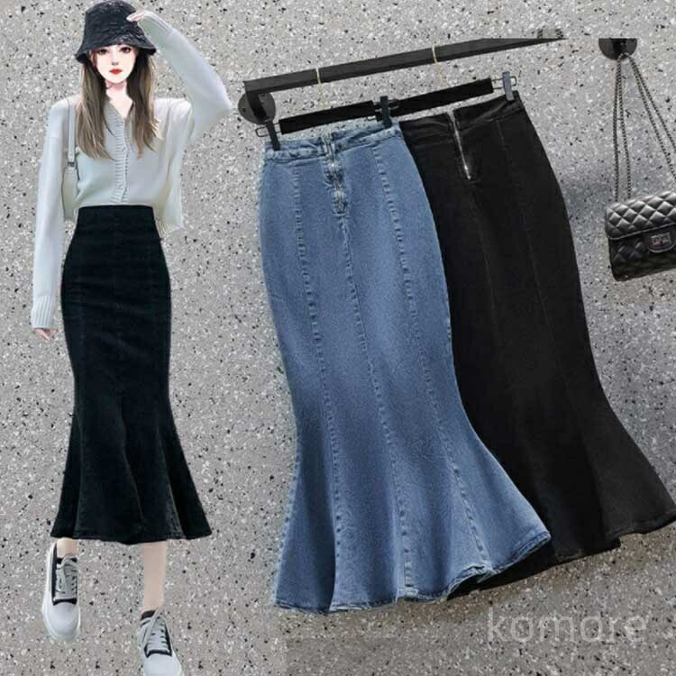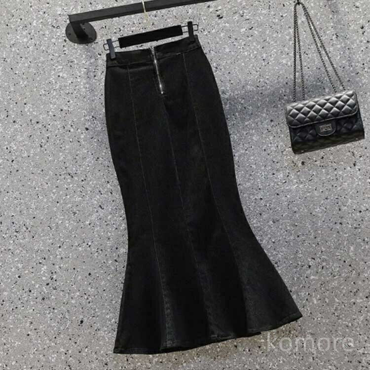 デニム デニムスカート ハイウエスト ボトムス スカート 通販 ブラック ブルー S M L XL