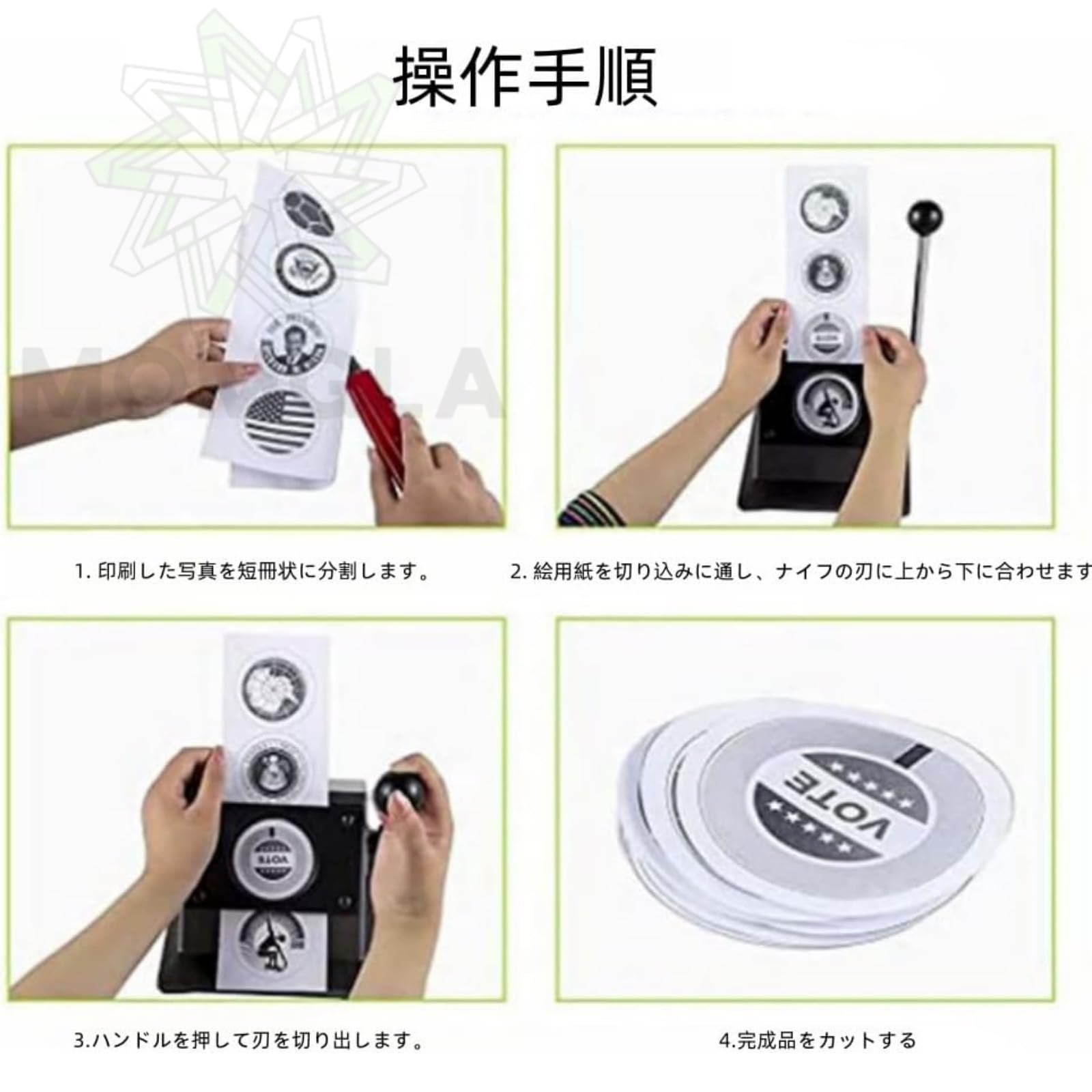 バッジボタンメーカー 切断機 マニュア ホビー 人気 25MM(実際の紙切り35MM) 32MM(実際の紙切り44MM) 37MM(実際の切り紙は49MM) 44MM(実際の紙切り54MM) 50MM(実際の紙切り61MM) 56MM(実際の紙切り66MM) 58MM(実際の紙切り70MM) 75MM(実際の紙切り86MM)