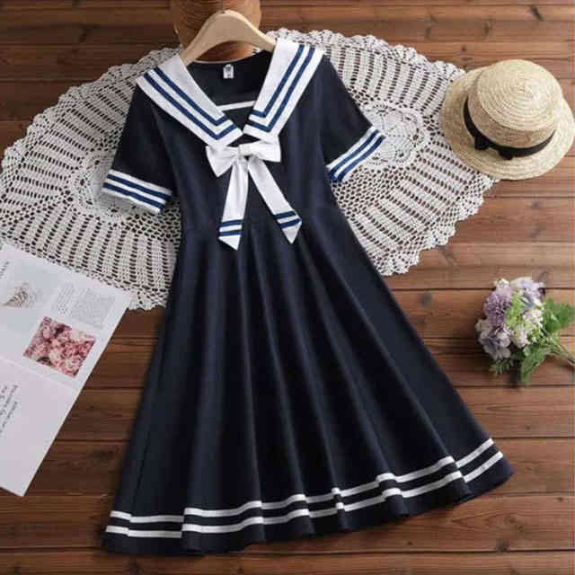 ロングワンピース リボン付き 制服 子 キッズ ワンピース 豊富 ネイビー ブルー 110 120 130 140 150 160 170