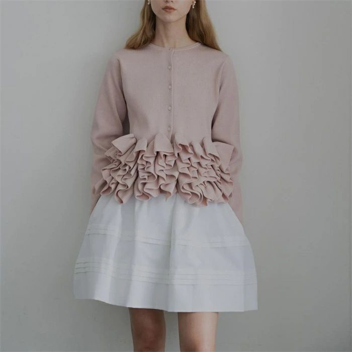 前開き 無地 可愛い カーデ カットソ レディースファッション 新作 ピンク ホワイト ブラック