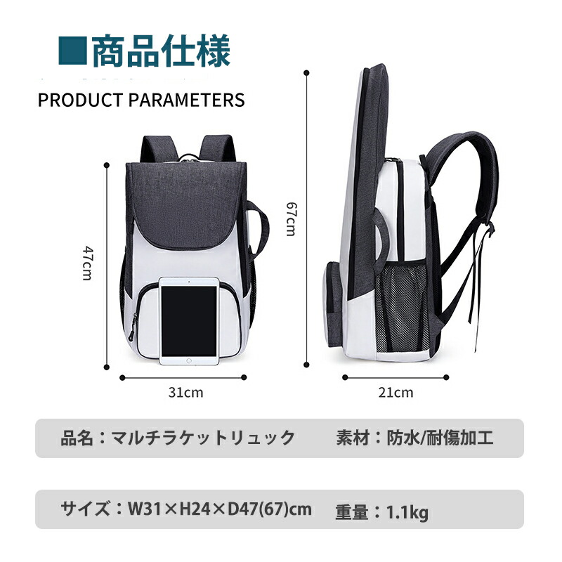 3Wayラケット ラケットバッグ リュ スポーツ アウトドア 通販 ブラック グレー