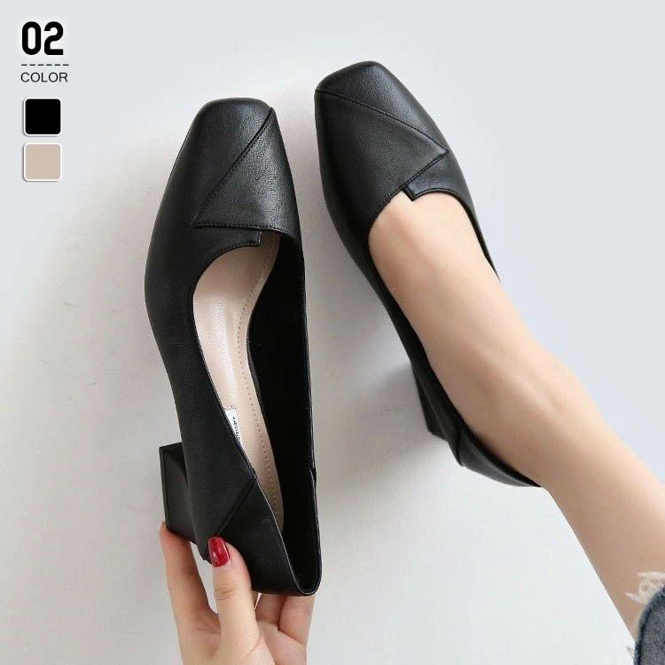 楽 足が痛くならないパンプス 疲労 スクエア スクエアトゥ ローヒール フォーマル 黒 4.5cmヒール 痛くない 歩きやすい ブラック
