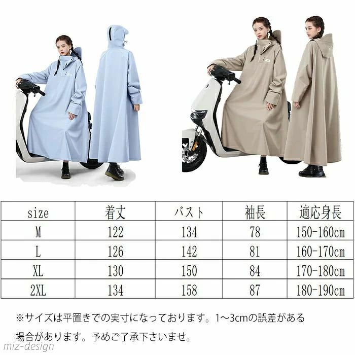 レインポンチョ自転車 ロング 防風防水 レディースファッション 続々入荷中 カーキ パープル ブルー グレー ブラック グリーン M L XL 2XL
