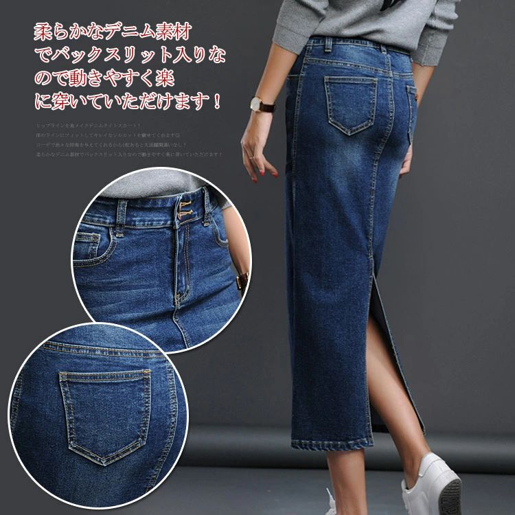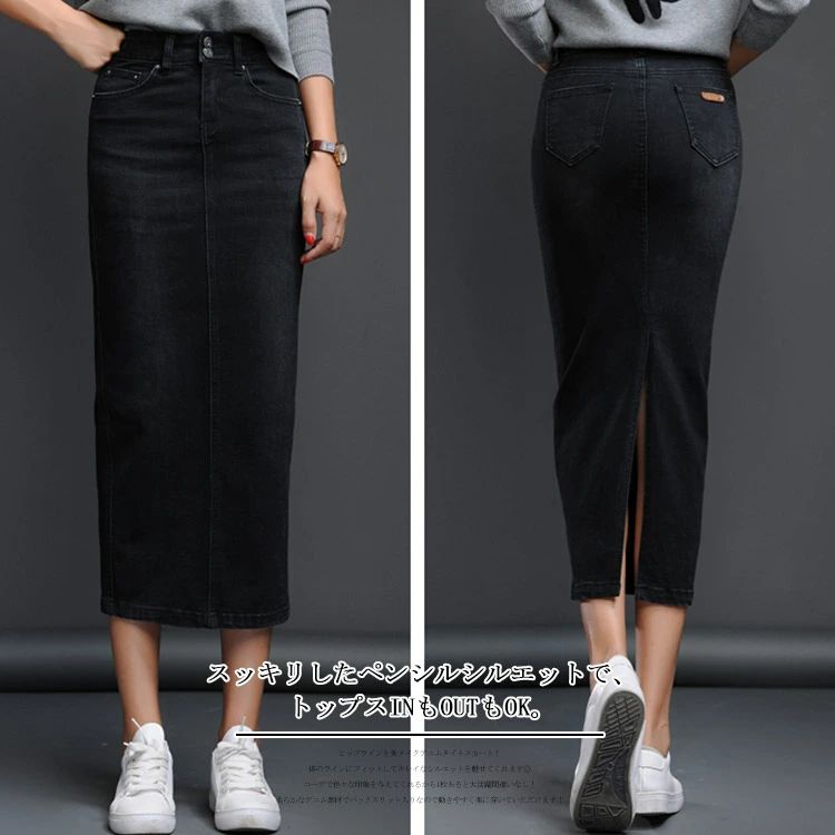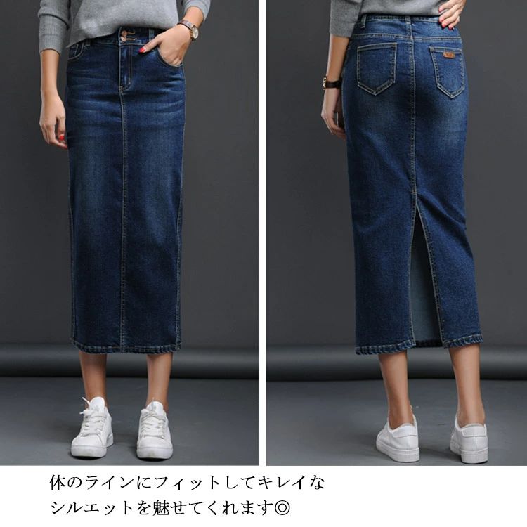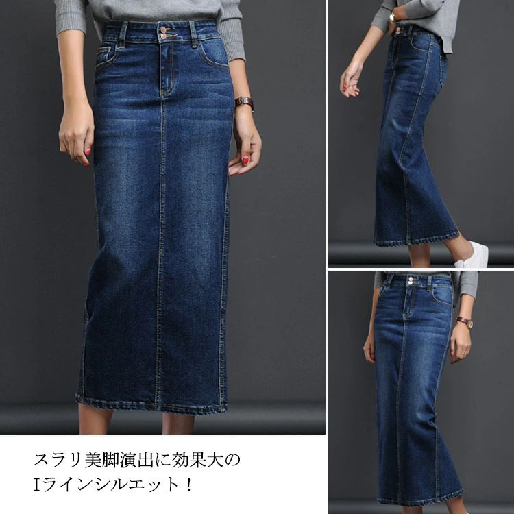 デニム ペンシルスカート マキシ丈 ミ ボトムス スカート 人気 ブラック ブルー S M L XL 2XL