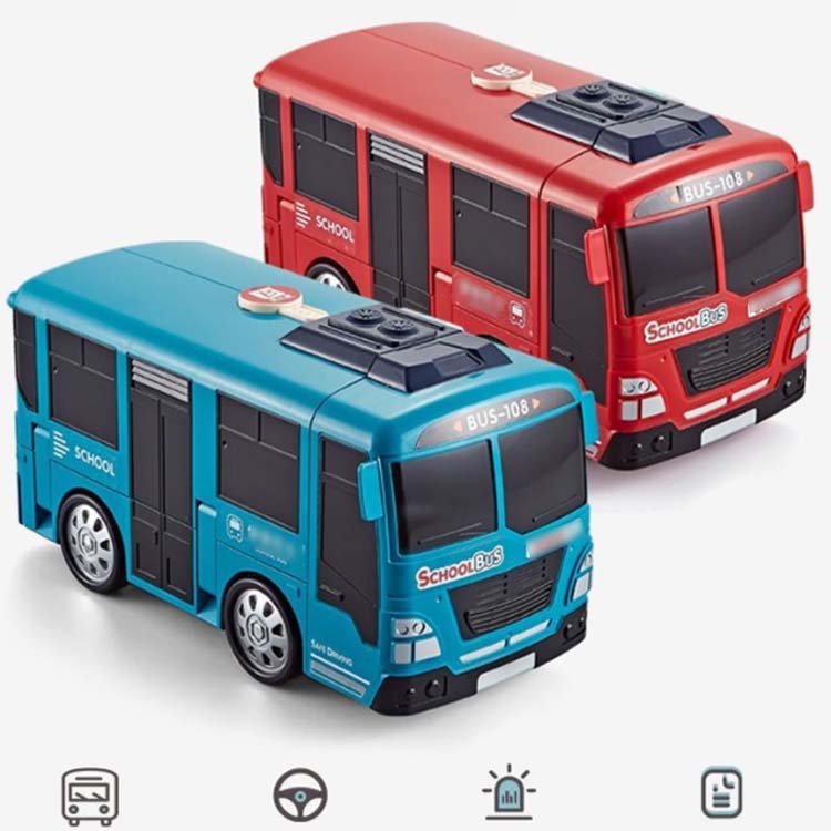 変形おもちゃ 建物模型 路線バス 女の ブルー レッド