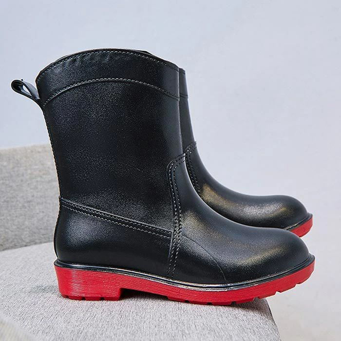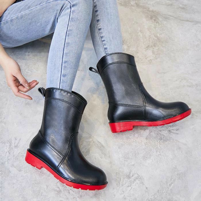 22.5~25.5cm レインブーツ 靴 通販 ブラック+レッド ブラック キャメル ブライトグリーン ピンク 35(22.5cm) 36(23cm) 37(23.5cm) 38(24cm) 39(24.5cm) 40(25cm) 41(25.5cm)