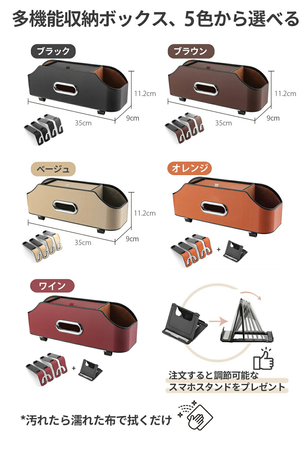 車 ティッシュケース 収納 シートバッ ブラック ブラウン ベージュ オレンジ ワイン