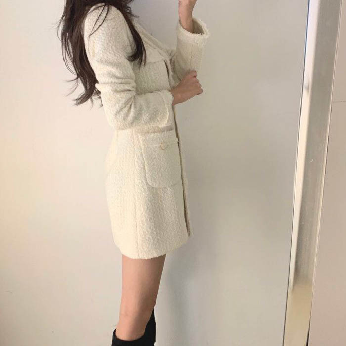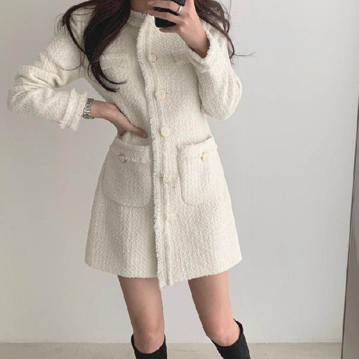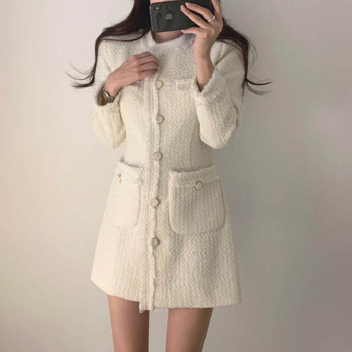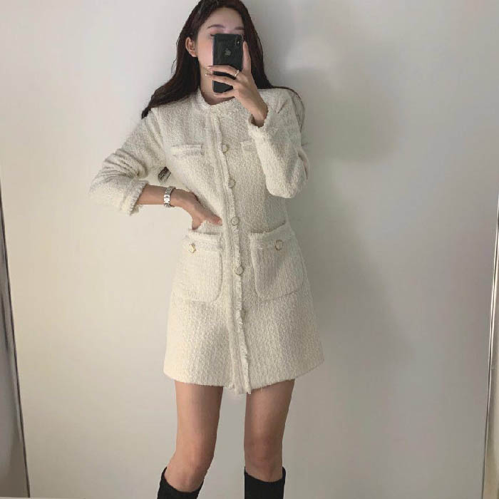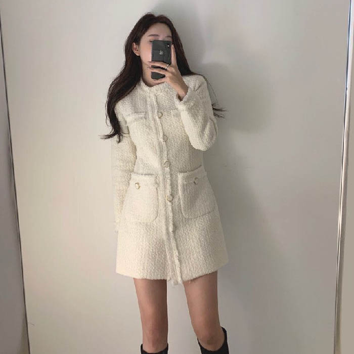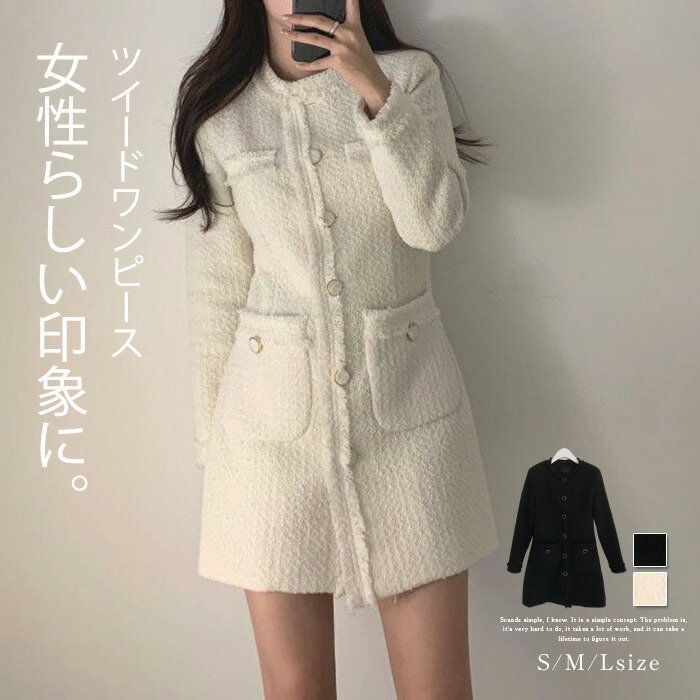 ワンピース レディース ツイード 春 レディースファッション 続々登場 オフホワイト ブラック S M L