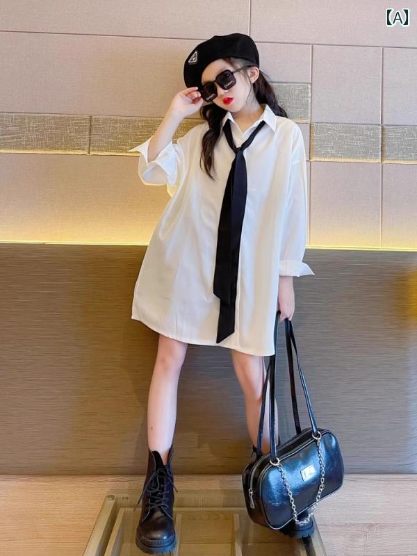シャツ パンツ ネクタイ セットアップ 女の子 長袖 Yシャツ ホワイトシャツ 春 薄手 子供服な ゆったり 韓国 トップス 小学生 中学生 ガーリー キュート カジュアル 通学 デイリー おしゃれ