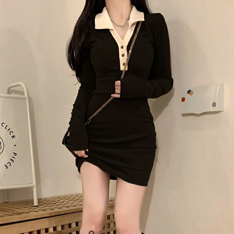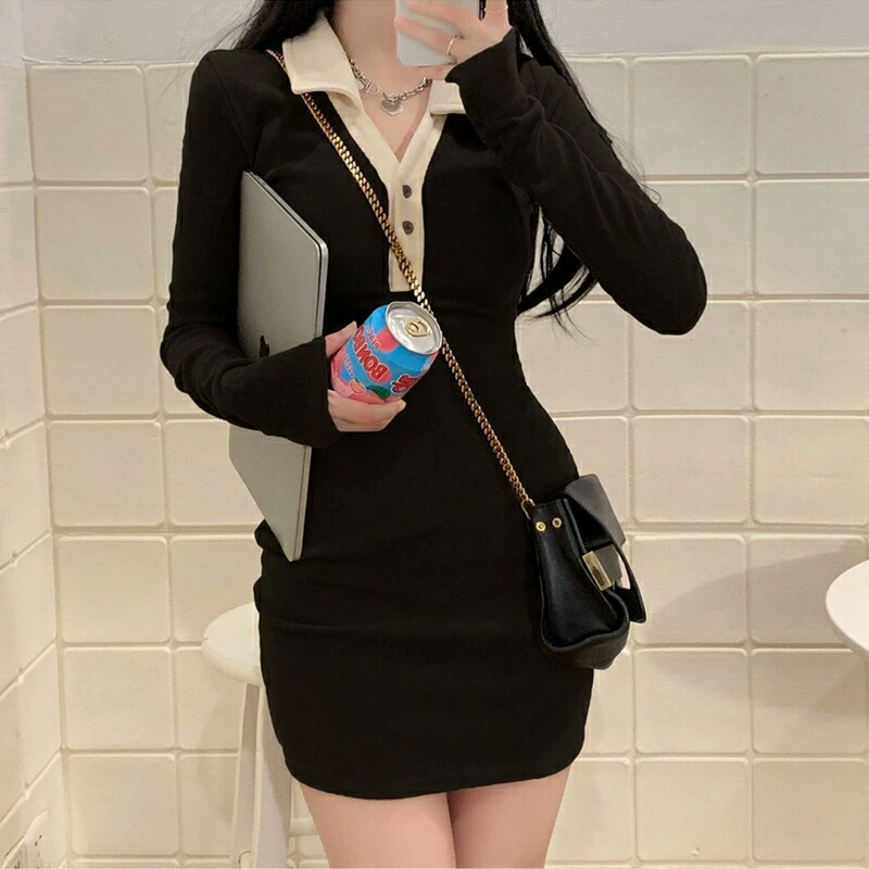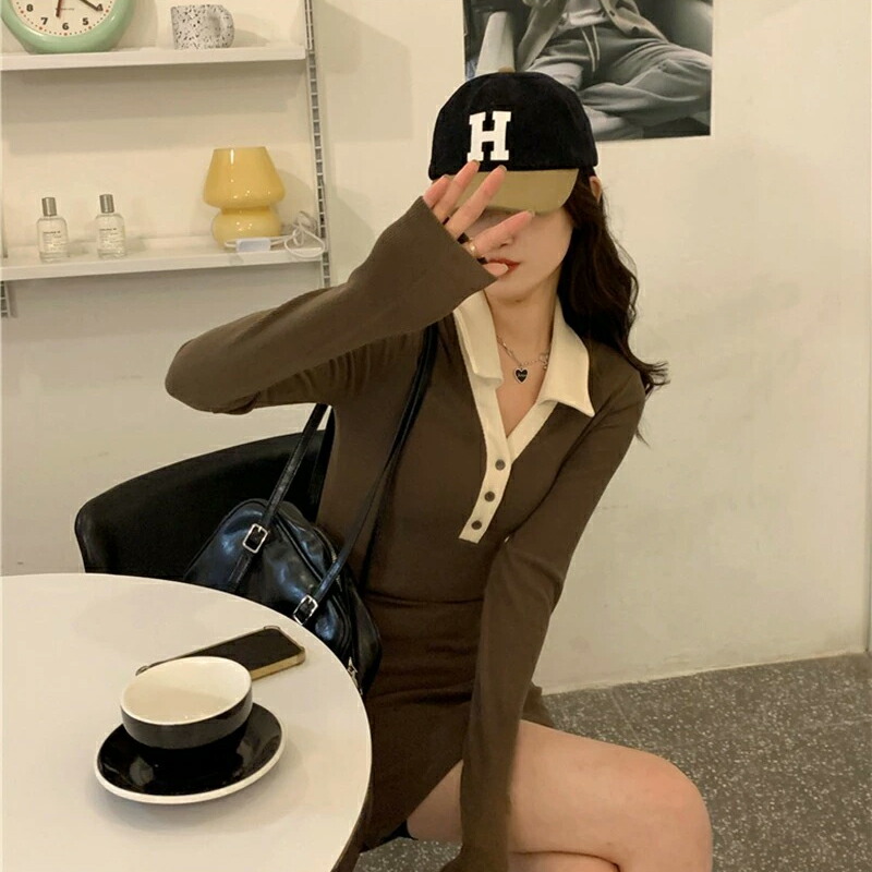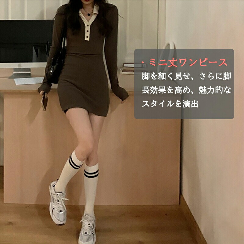 ワンピース ミニ丈 オープンカラー ニ レディースファッション 新登場! ブラック コーヒー S M L XL/LL