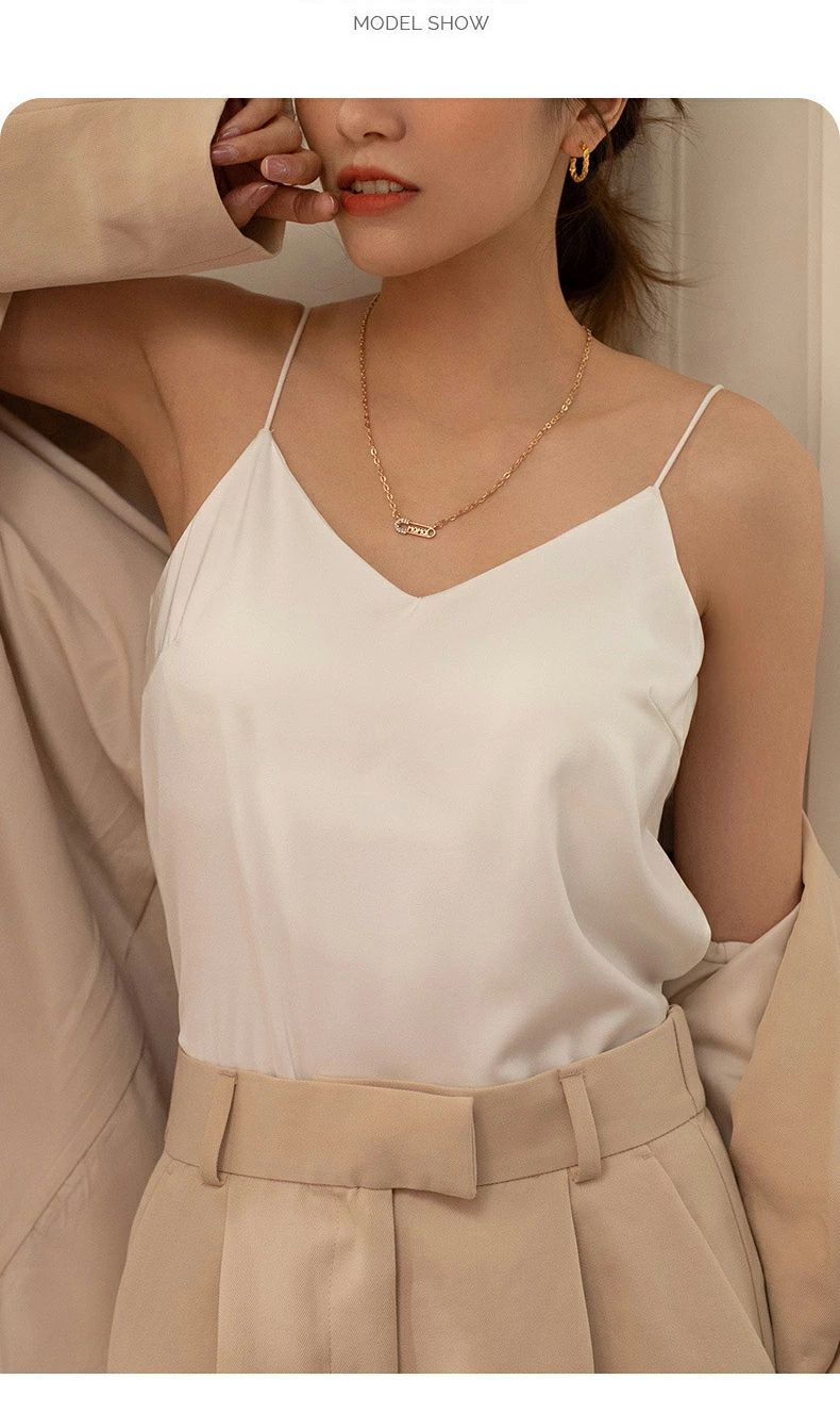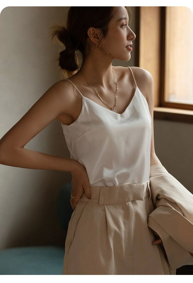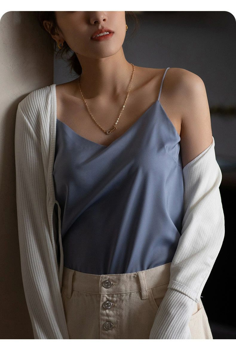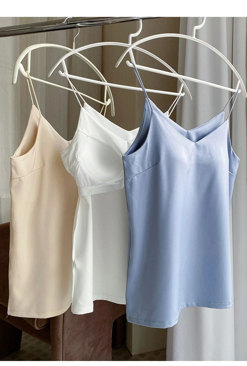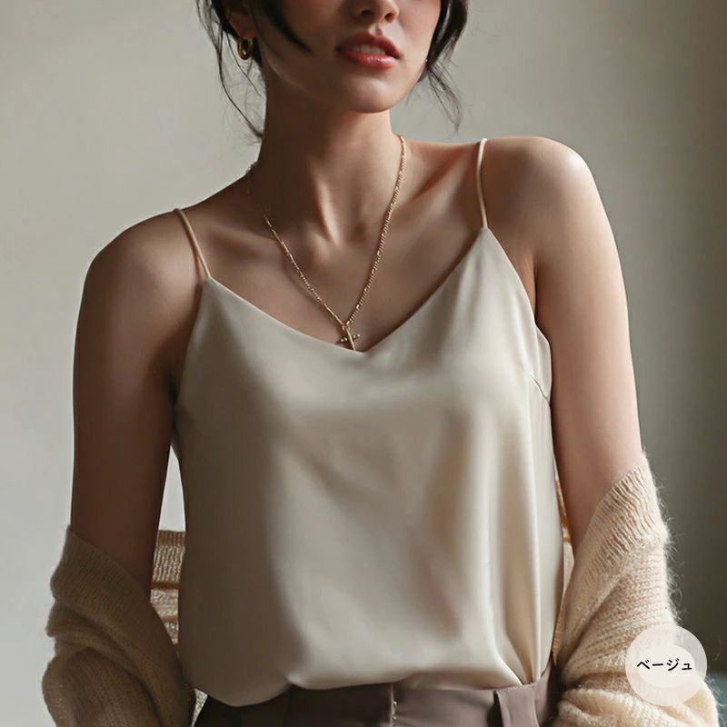 インナー タンクトップ サテン 下着 トップス キャミソール 人気 ホワイト ベージュ ブルー ブラック グレイグリーン S(35-45kg) M(45-52kg) L(52-60kg) XL(60-65kg) XXL(65-70kg)