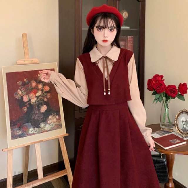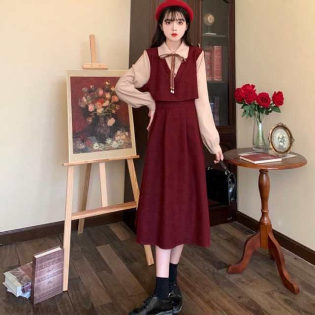 着痩せ ワンピース 長袖 春 膝下丈 レディースファッション 超目玉商品 ブラウン ワインレッド ブラック S M L XL 2XL