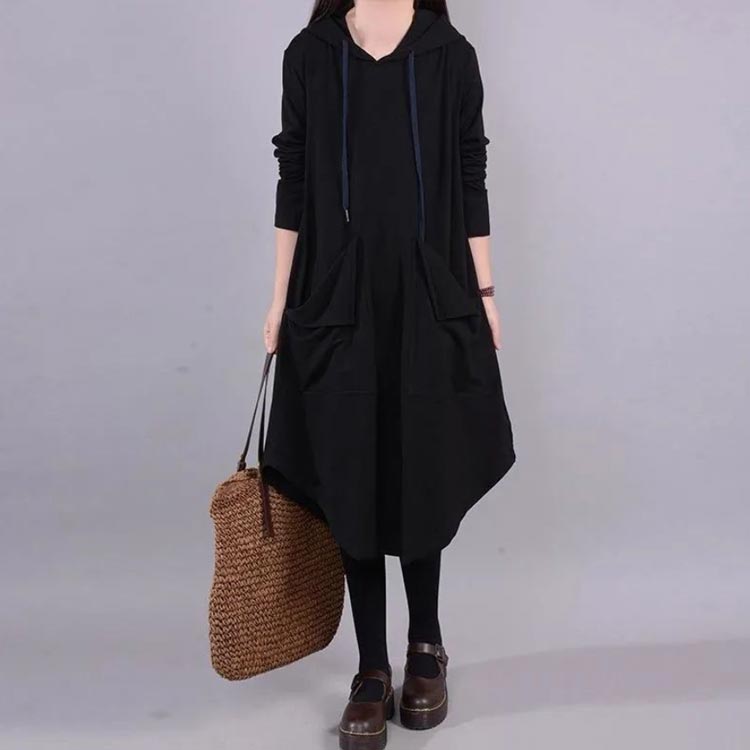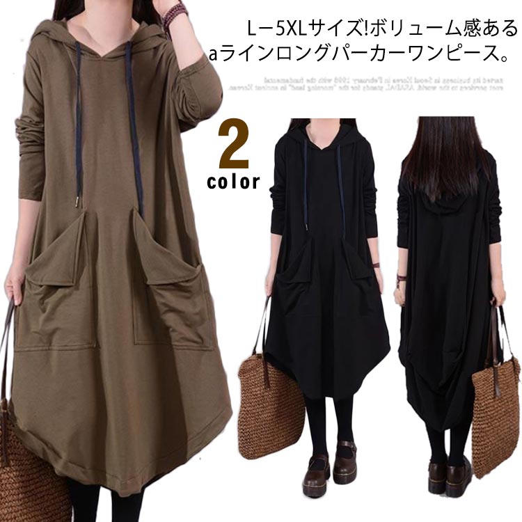 フード付き 春 L-5XLサイズ アシ ワンピース 超目玉商品 ブラウン ブラック L XL 2XL 3XL 4XL 5XL