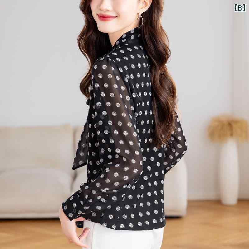 ブラウス シャツ ドット レディース レディースファッション 新登場! A:ブラウン B:黒 M L XL 2XL 3XL
