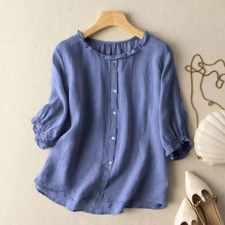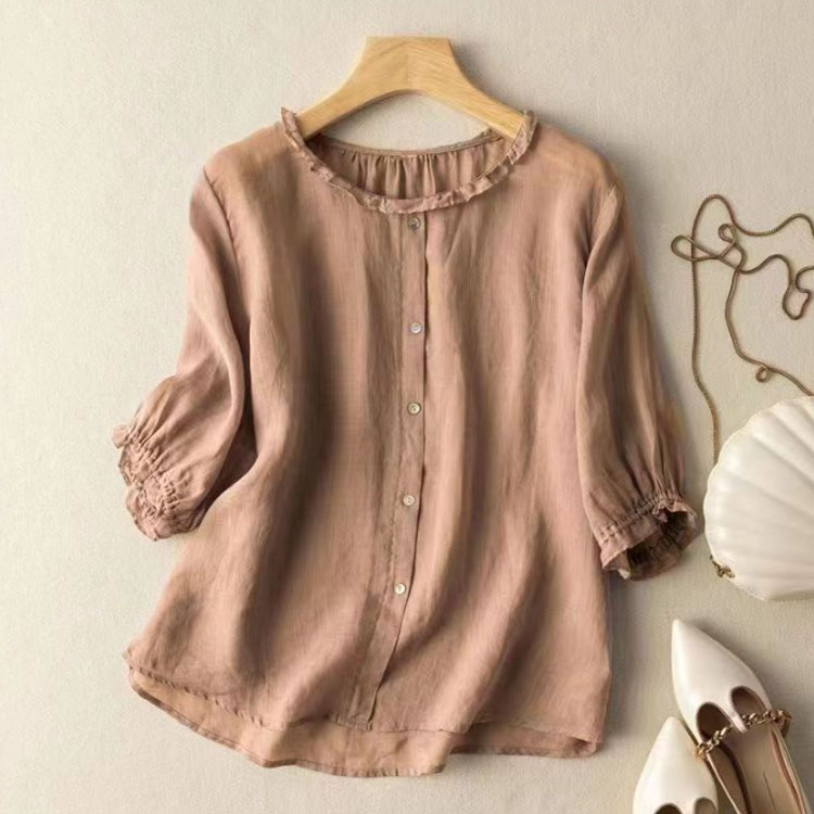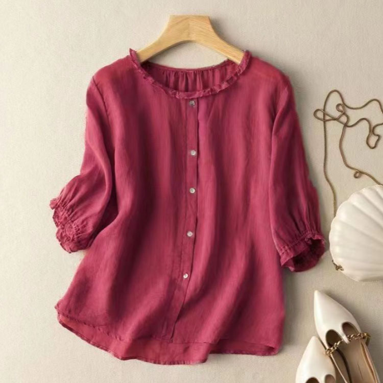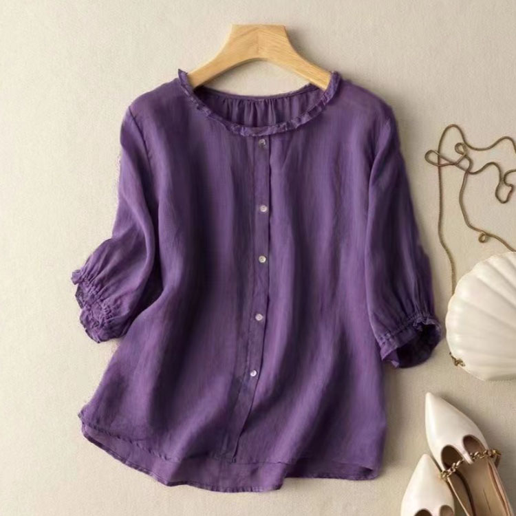 ブラウス レディース 夏 5分袖 ラウ トップス シャツ ブラウス 新登場! ホワイト コーヒー ベージュ パープル ワインレッド ブルー M L XL 2XL 3XL