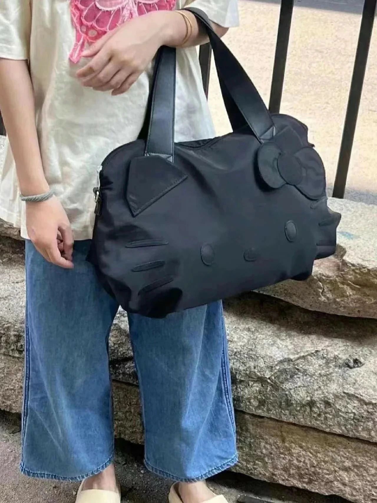 トラベルバッグかわいい女の子ポータブル大型トートバッグ韓国 ローキティ大容量キティ荷物バッグ収納用品