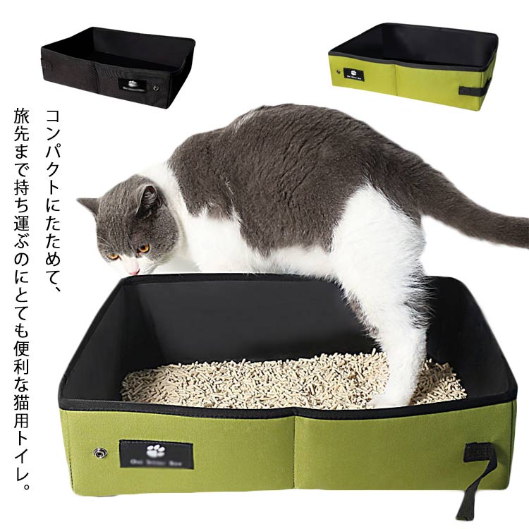 ペット用品 軽量 折りたたみ トイレ 猫用品 トイレ用品 トレーナー トイレ容器 続々入荷中 グリーン ブラック S(40*27*11.*cm) L(45*35*13cm)