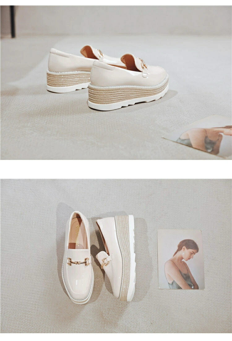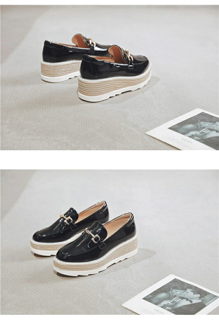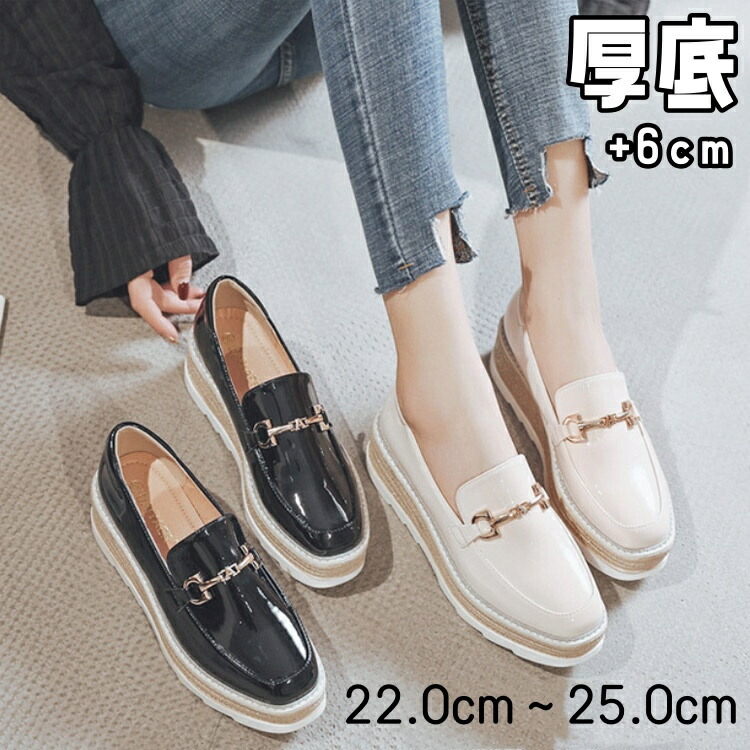 エナメル調 レディース ローファー 厚 靴 大人気! ブラック ベージュ 34(22.0cm) 35(22.5cm) 36(23.0cm) 37(23.5cm) 38(24.0cm) 39(24.5cm)