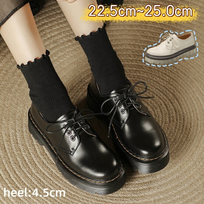 レディース レースアップ 4..5cm 靴 豊富な品揃え ベージュ ブラック 35(22.5cm) 36(23.0cm) 37(23.5cm) 38(24.0cm) 39(24.5cm) 40(25.0cm)