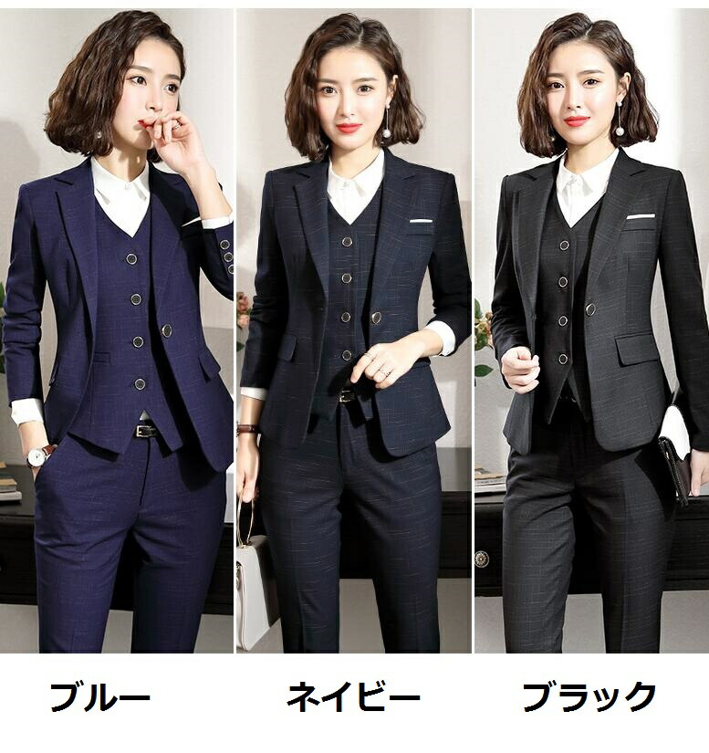 上品 オフィス エレガント リクルート レディースファッション 豊富 S M L XL 2XL 3XL 4XL 5XL ブルー上着+ベスト+パンツ ネイビー上着+ベスト+パンツ ブラック上着+ベスト+パンツ ブルー上着+ベスト+スカート ネイビー上着+ベスト+スカート ブラック上着+ベスト+スカート