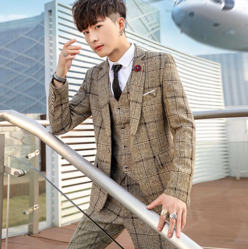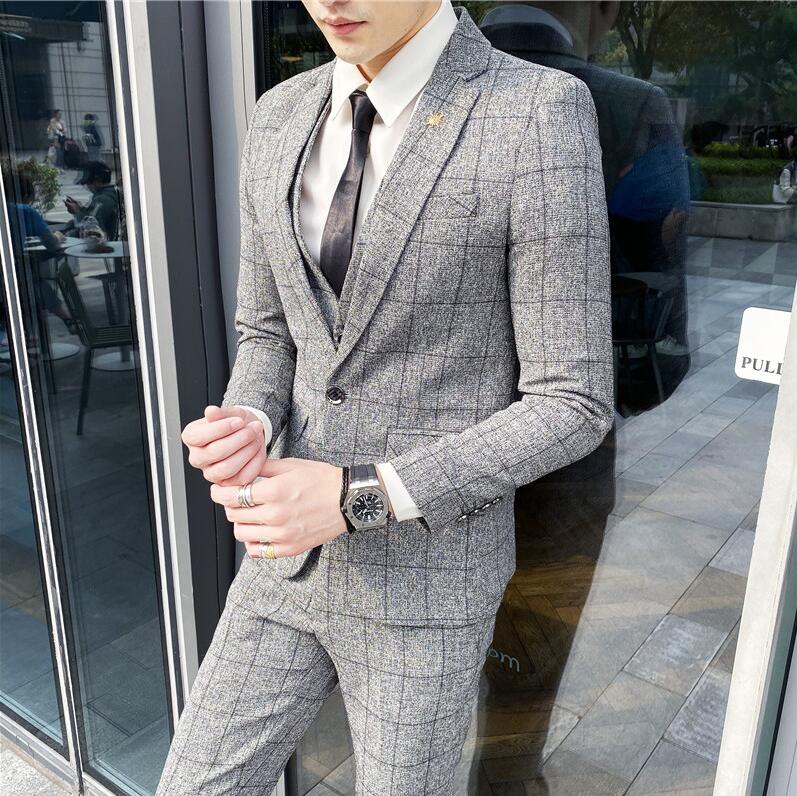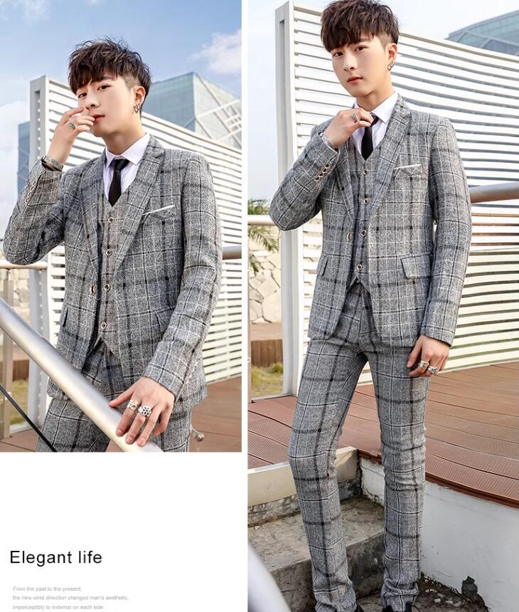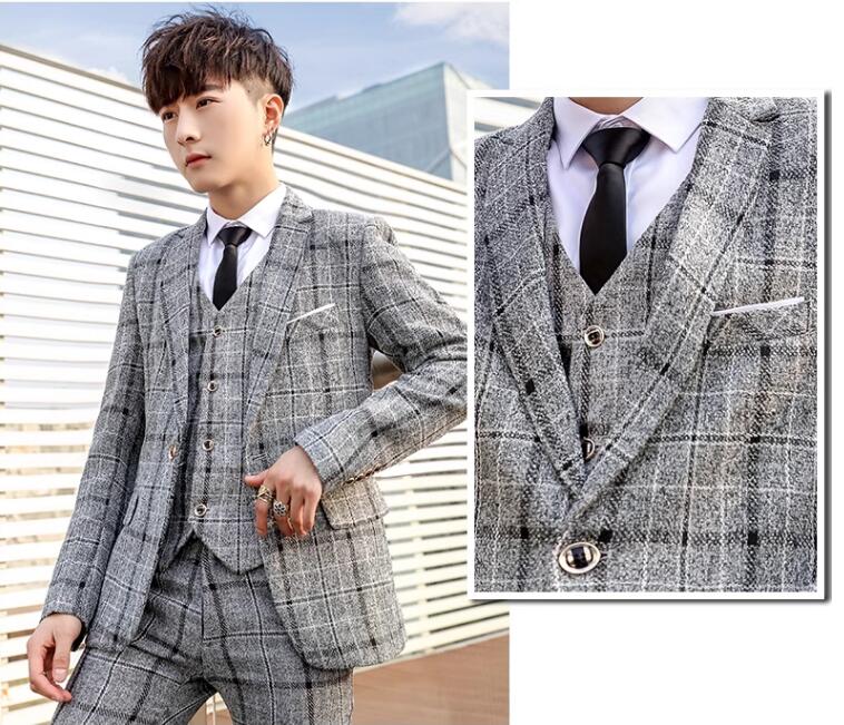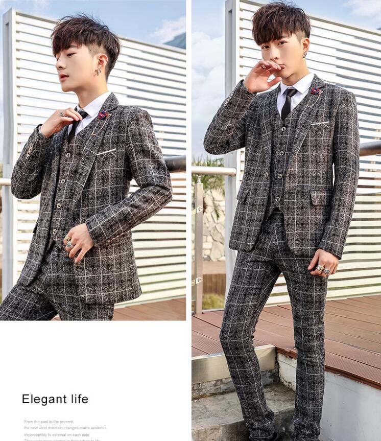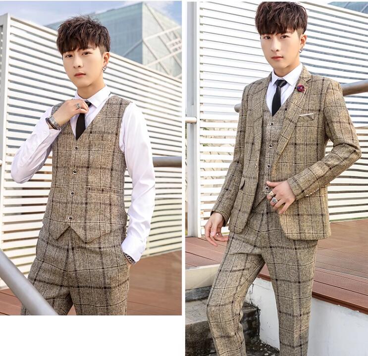 安価 お得 4色 チェック柄 3ピーススーツ おしゃれメンズスーツ 高品質 スリーピース suit 細身 花婿 紳士用 フォマール ビジネススーツ セレモニースーツ 就職 入社 スリムスーツ 卒 通勤