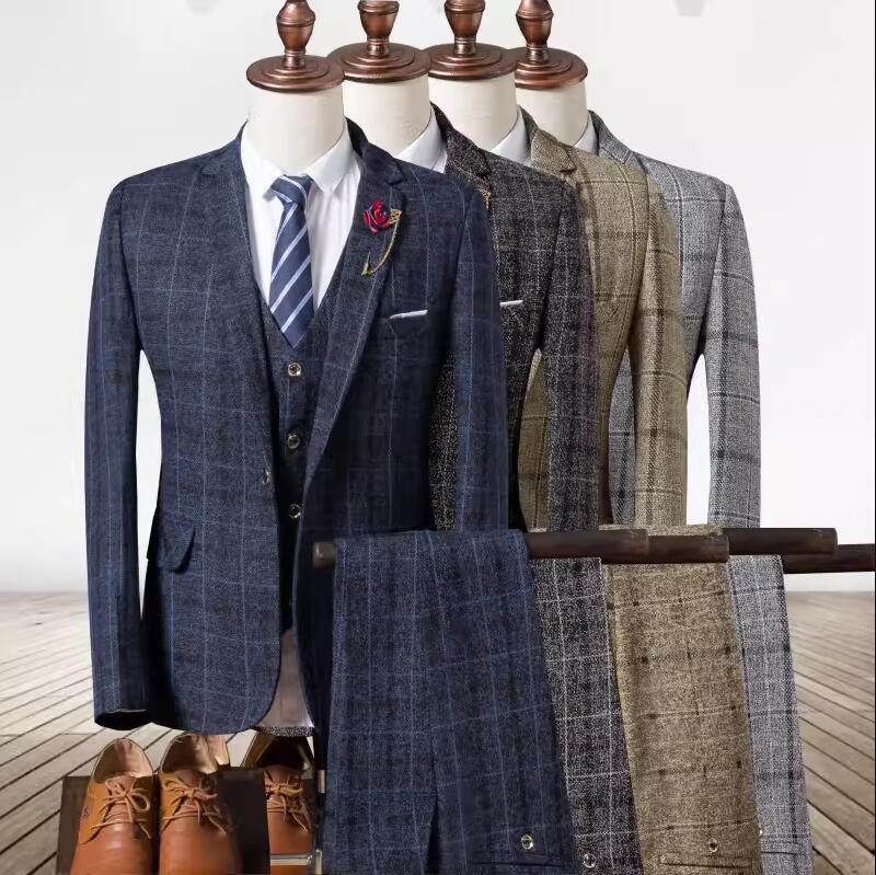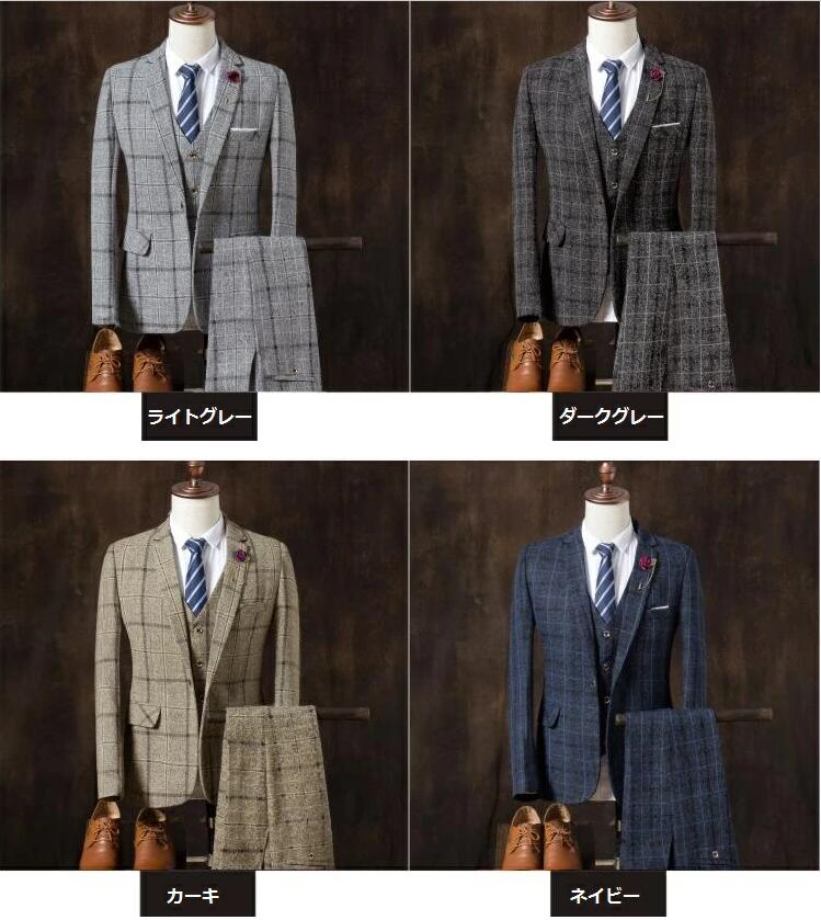 安価 お得 4色 チェック柄 3ピース スーツ セットアップ スーツ 人気 M L XL 2XL 3XL 4XL 5XL ライトグレー ダークグレー ネイビー カーキ