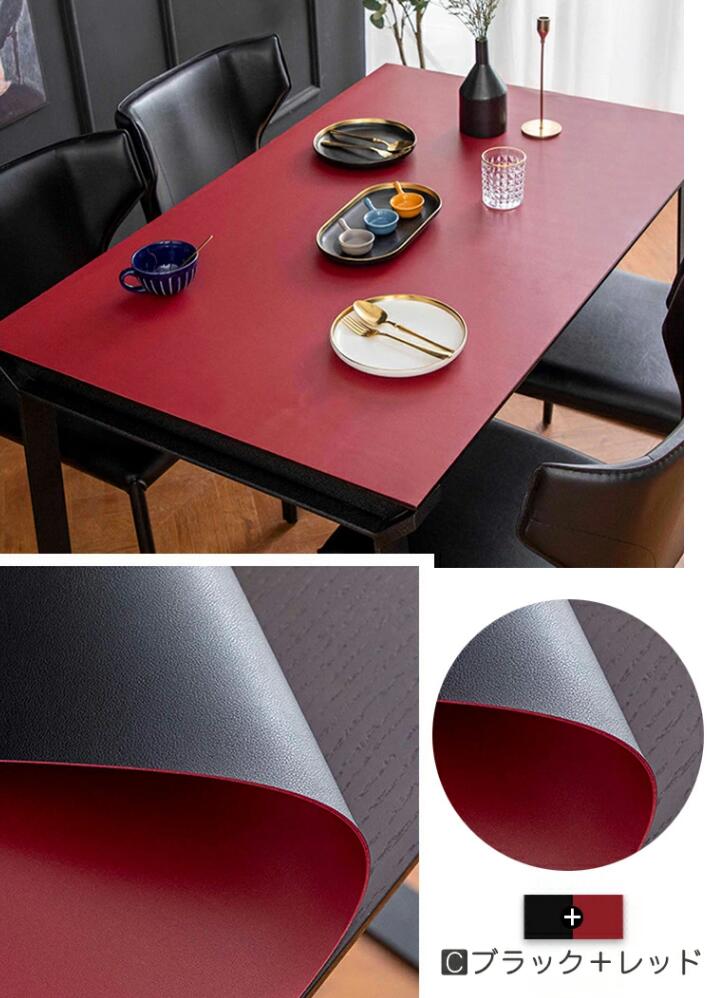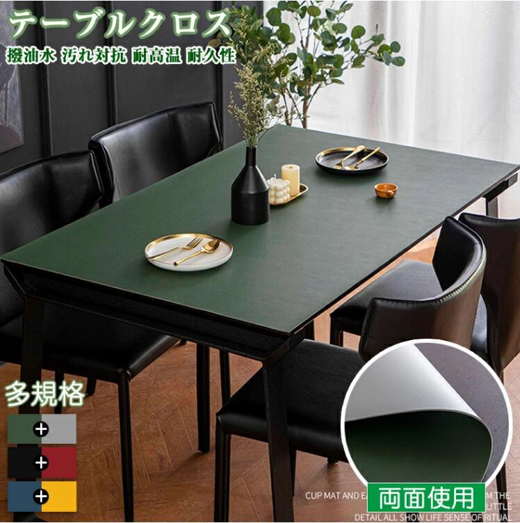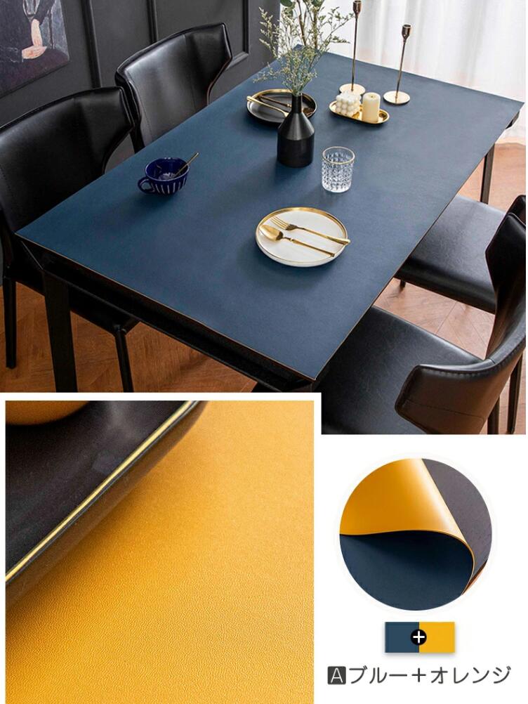 3色 テーブルクロス テーブル クロス ビニール 撥水 お洒落 撥水加工 両面使える 厚さ 2mm 汚れ防止 滑り止め 耐熱 正方形 マット 長方形 テーブルマット PU革 オーダー 無地 ブル 角型