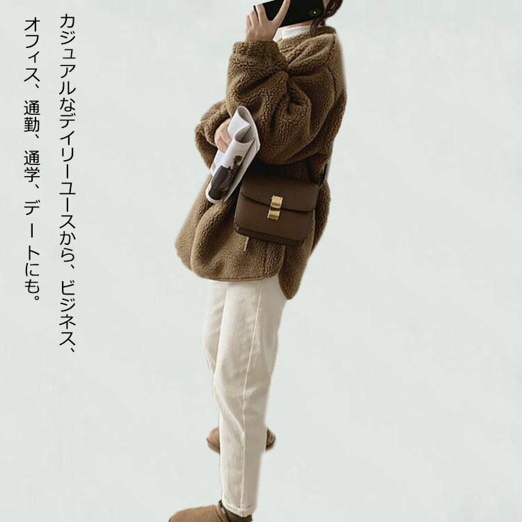 ゆったり大きめのデザイン、体型カバーしてくれるふわふわで柔らかなボアブルゾンです。 ポケットがあり、ボタン開きでバイカラーのデザインですので、すごくおしゃれです。 袖口部分にはリブが入り、防風効果が抜群です。
