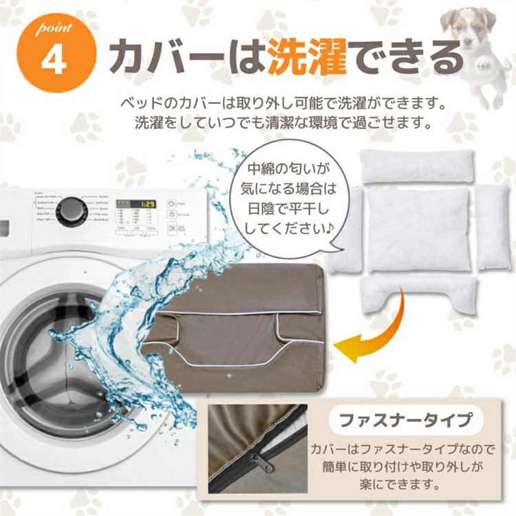 手洗いOK、洗濯機洗いも可能です。いつでも清潔に保てることで、ペットも快適に過ごすことができます。また、清潔を保つことで細菌やダニの増殖を抑えて、ペットは皮膚疾患を予防できます。