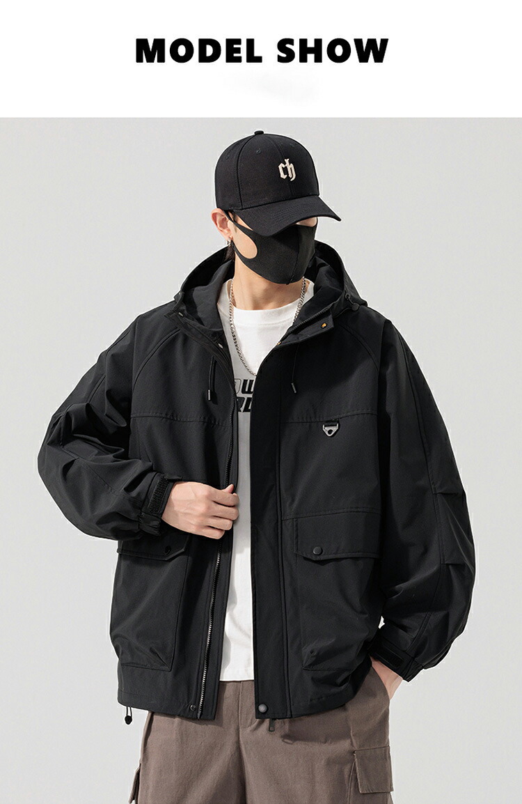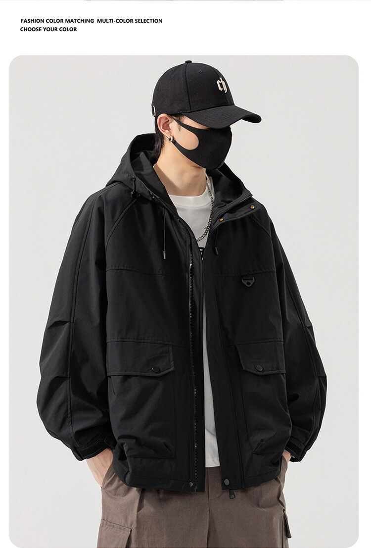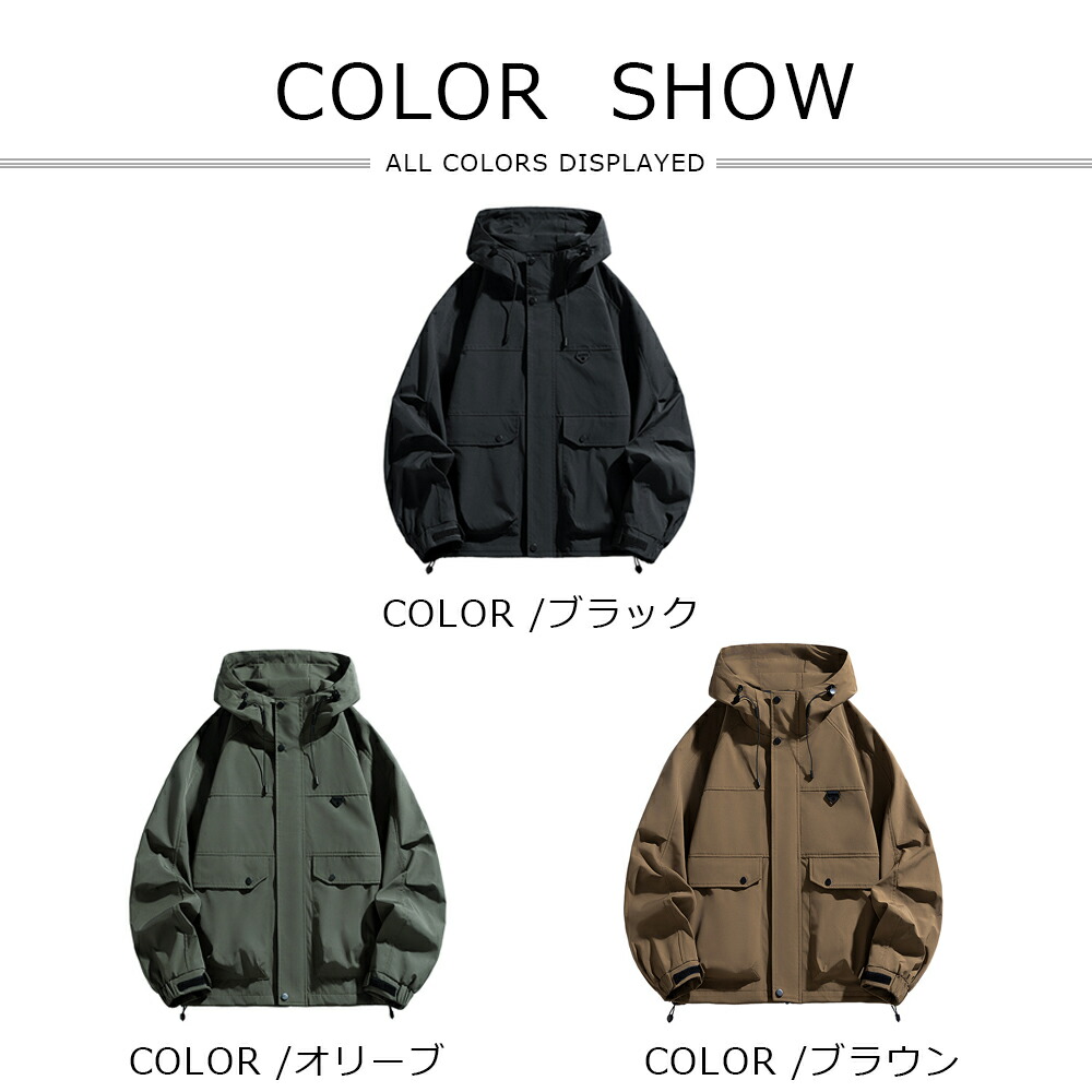ジャケット メンズ 大きいサイズ ウインドブレーカー ブルゾン フード付き 無地 撥水 防風 長袖 軽量 ジップ アウター カジュアル おしゃれ 通勤 旅行 登山 釣り 春 秋 M-5XL アウトドア