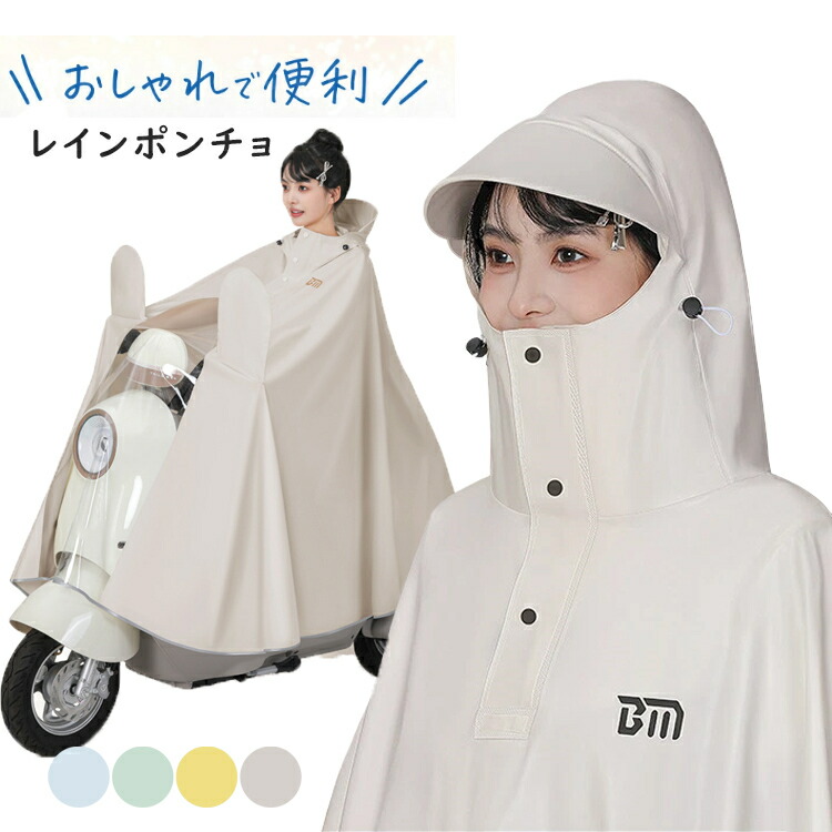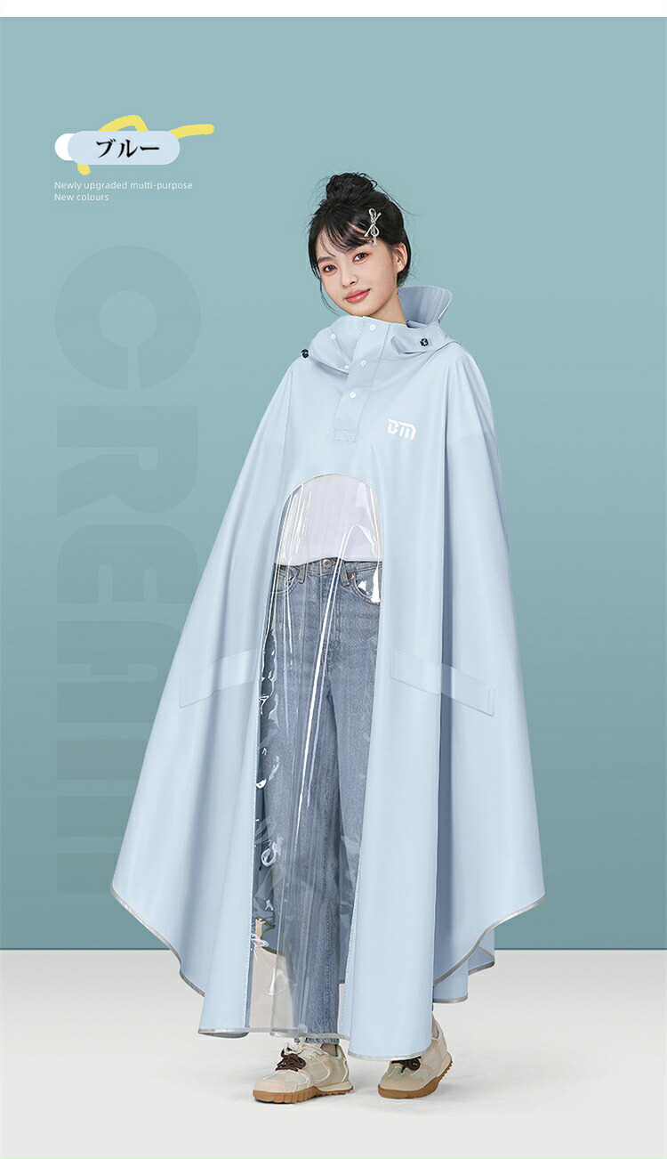 レインコート 自転車 レインポンチョ 大きいサイズ ロング丈 ロングコート レインウェア 通学 男女兼用 レディース メンズ 透明バイザー 雨具 自転車用レインコート 雨カッパ 防水