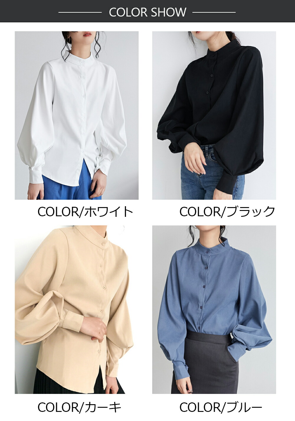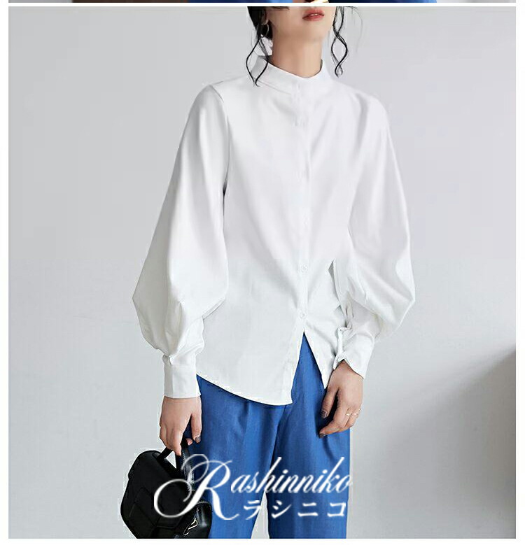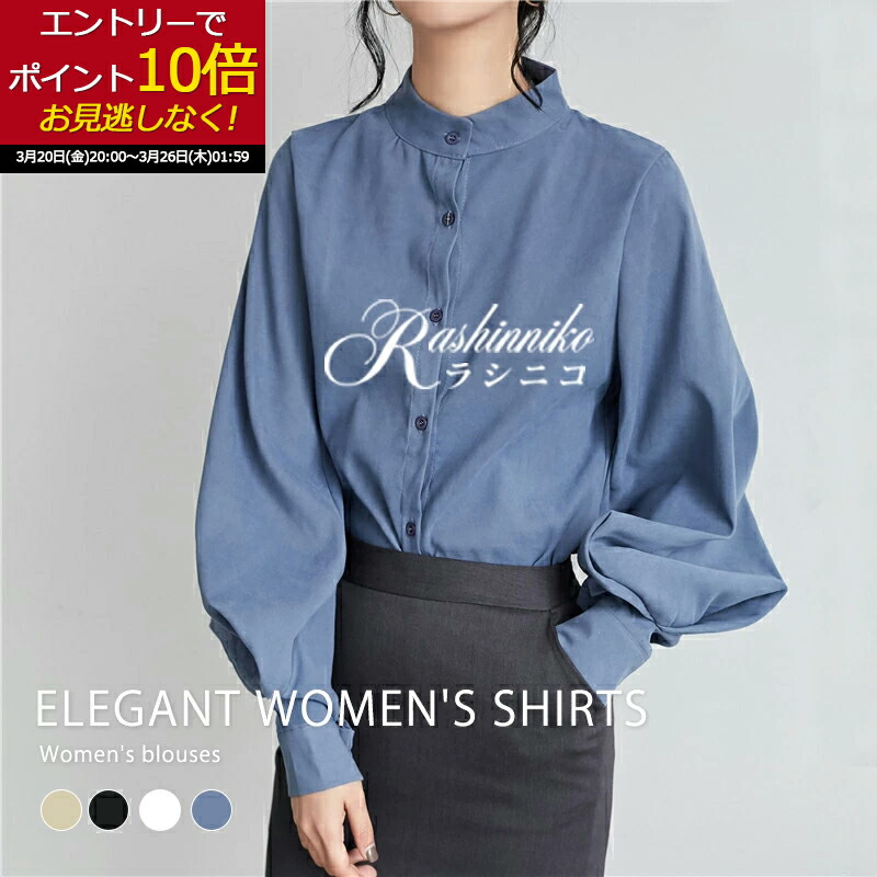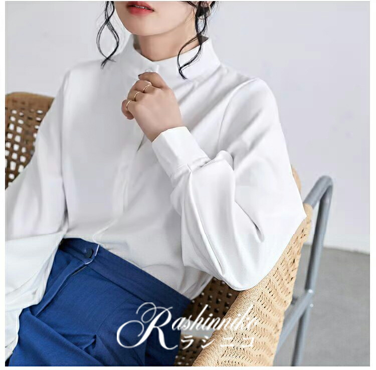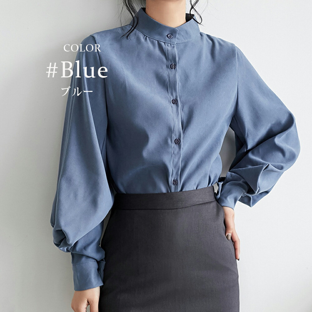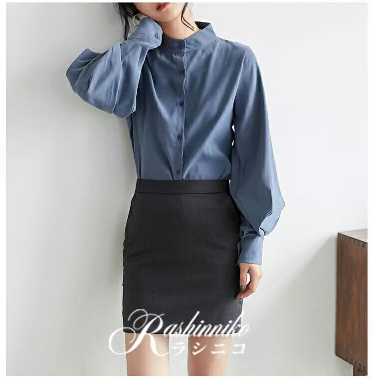 立ち襟 ブラウス レディース 長袖 バ トップス シャツ ブラウス 超目玉商品 ブラック ホワイト カーキ ブルー S M L XL