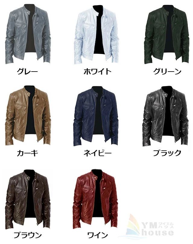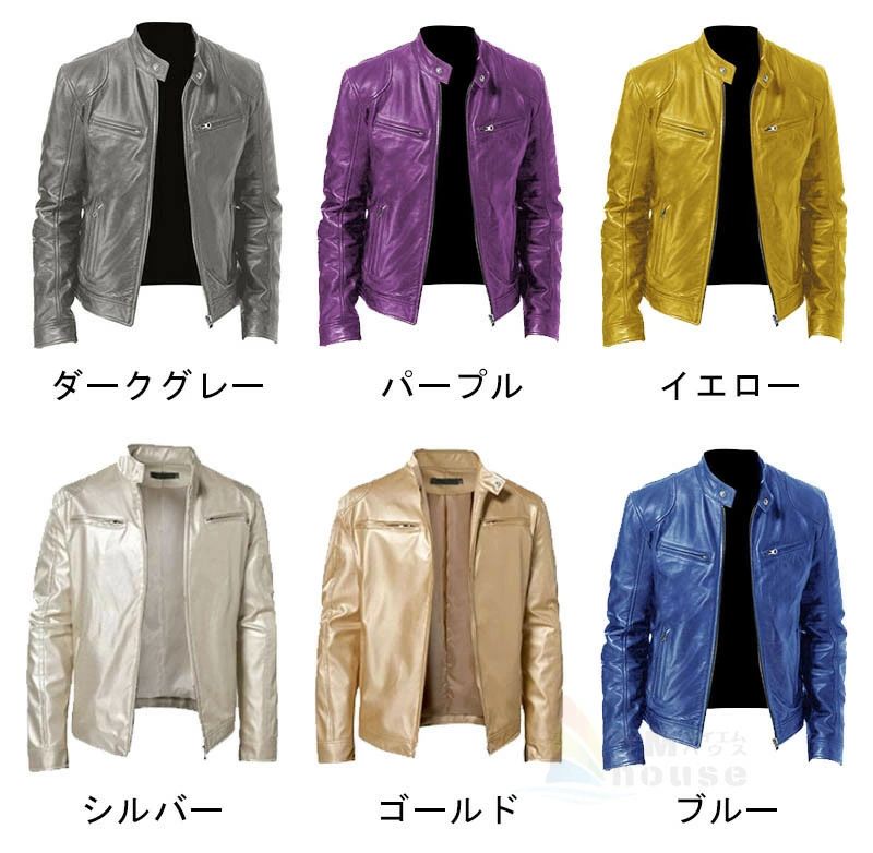 ライダースジャケット 革ジャン メンズ コート ジャケット 新作 ブラウン ワイン グレー グリーン ホワイト カーキ ブラック ネイビー ダークグレー ブルー イエロー パープル ゴールド シルバー S M L XL 2XL 3XL 4XL 5XL 6XL 7XL 8XL 9XL