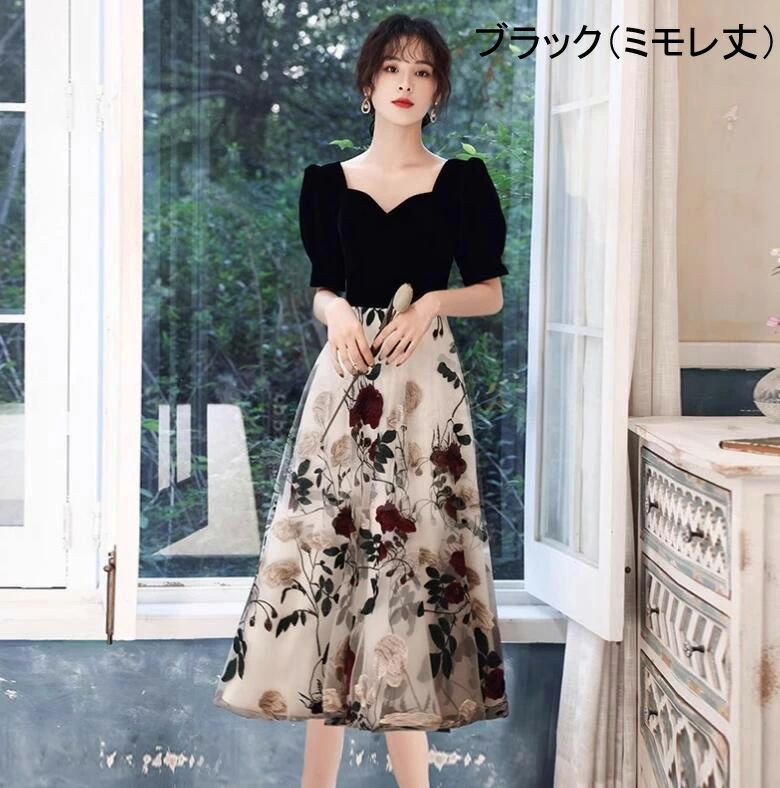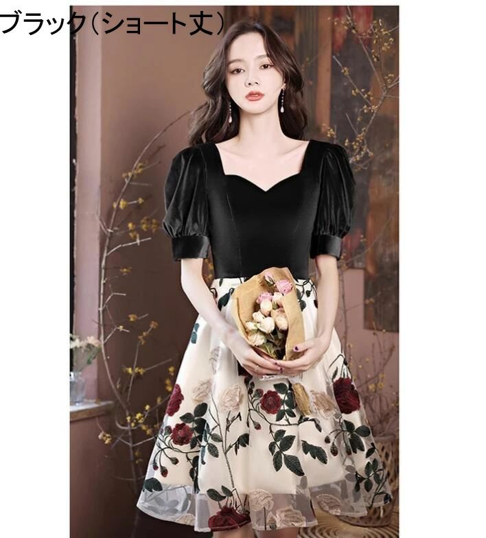 可愛い お花嫁ドレス フォーマルドレス レディースファッション 続々登場 ブラック(ロング丈) ブラック(ミモレ丈) ブラック(ショート丈) S M L XL 2XL