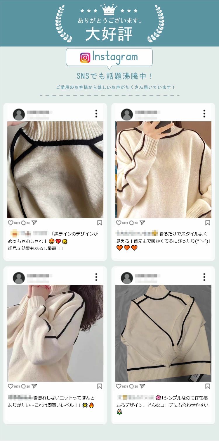 ◆ニット製品は、生産過程上、混紡・プレス加工・製品洗い加工によって形やサイズに誤差(5cm前後) が生じる場合がございますが品質上の問題はございません。