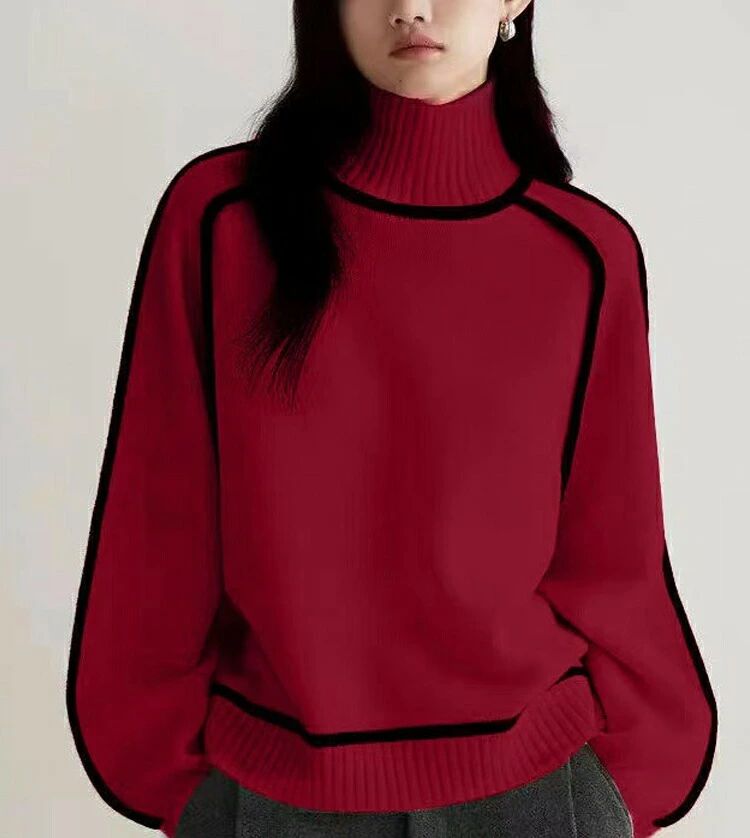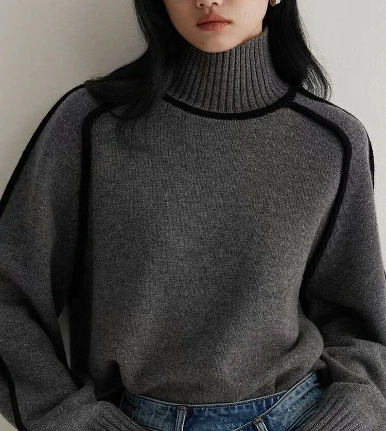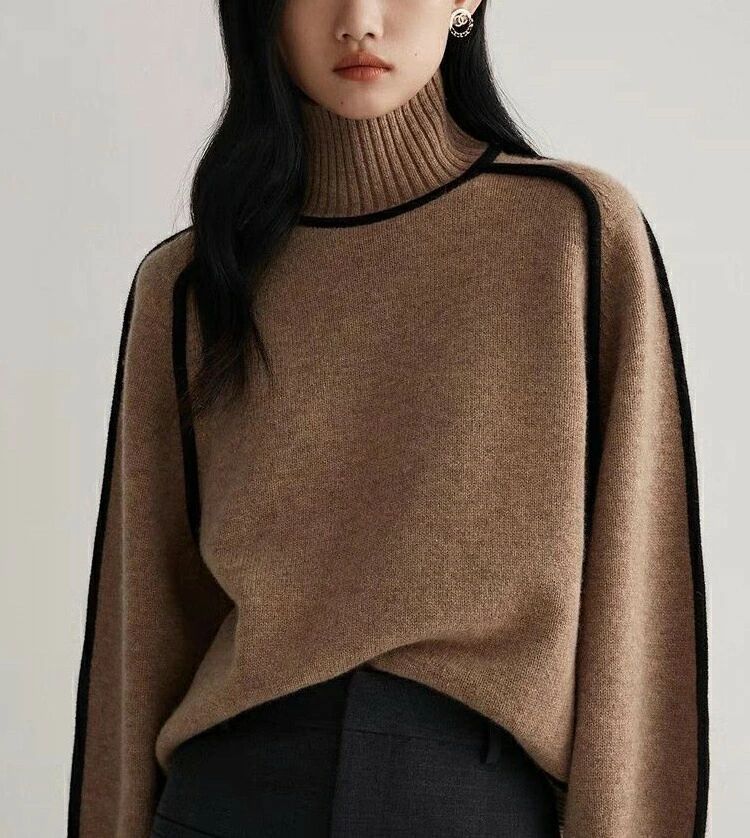 ハイネックデザインながら、柔らかな素材で首元の締め付け感がなく、長時間の着用でも快適。