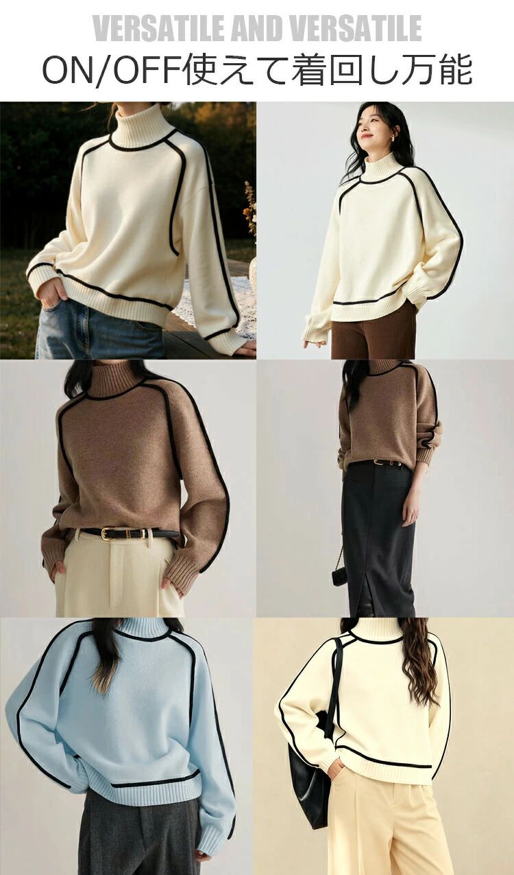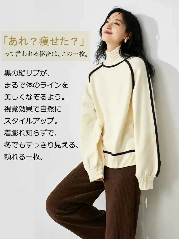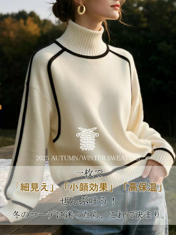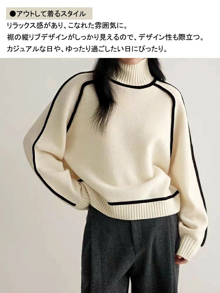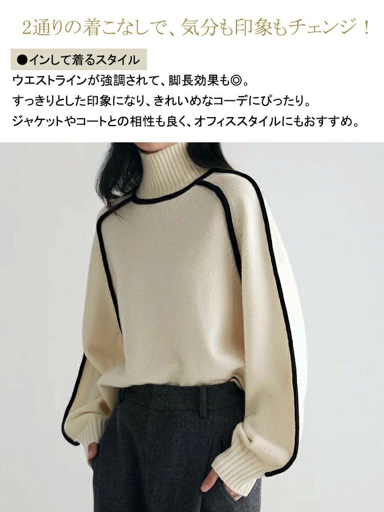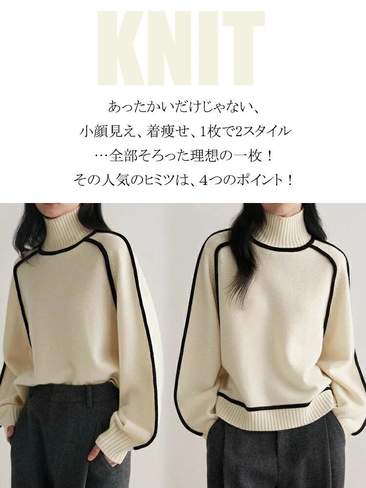 ニット セーター 無 長袖 着やせ 1枚で2スタイルその他 カテゴリトップ タートルネック