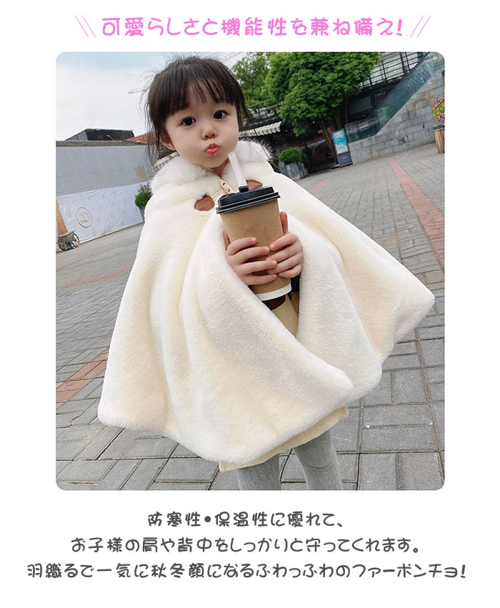 ポンチョ 子ども ベビー キッズ 赤ち キッズ ケープ マント 新作 キャメル 白 ピンク 80 90 100 110 120 130