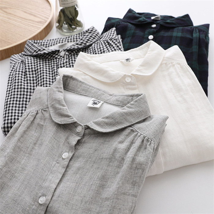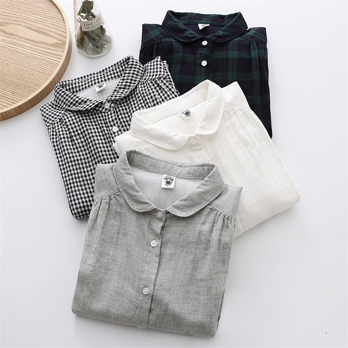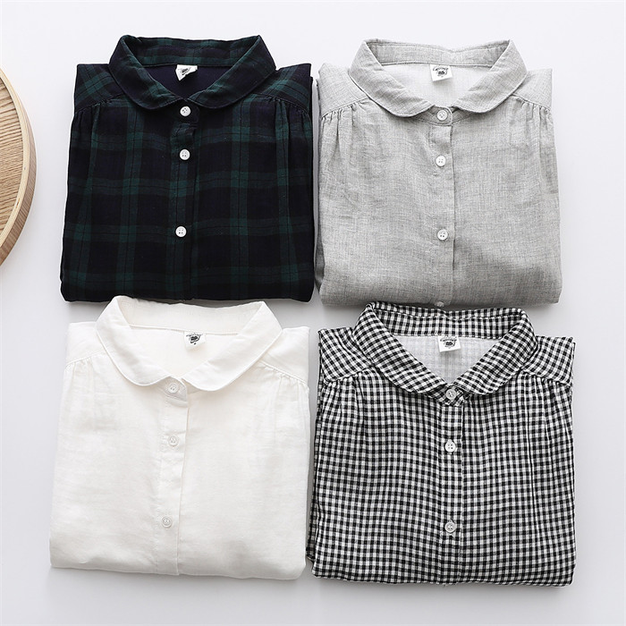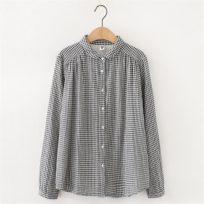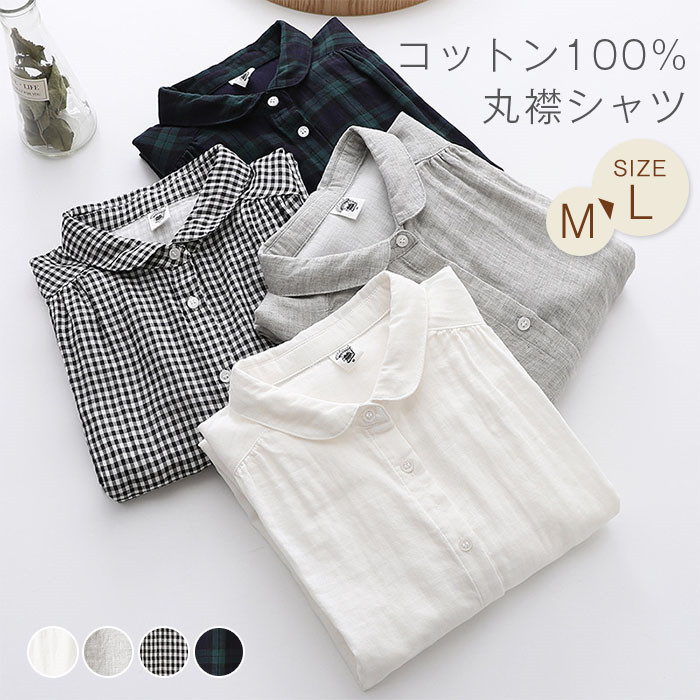 コットン シャツ レディース 長袖 丸 レディースファッション 超目玉商品 ホワイト グレー 黒白チェック 緑黒チェック M L