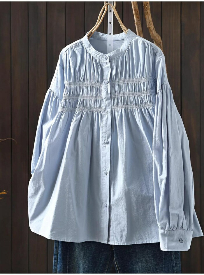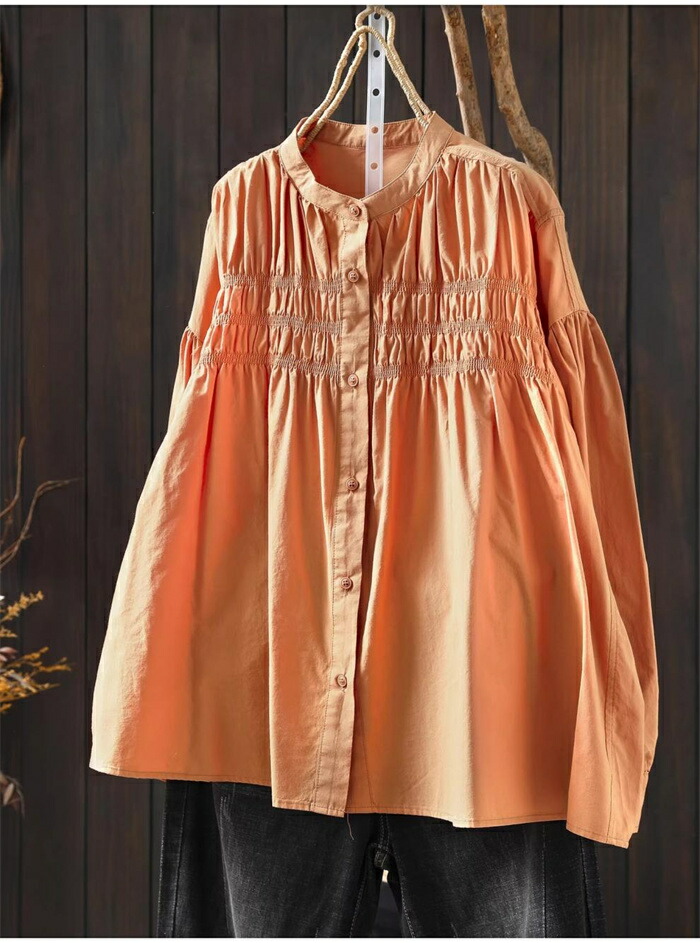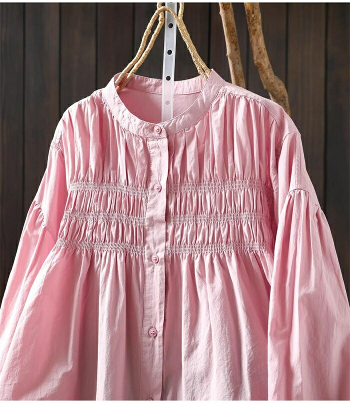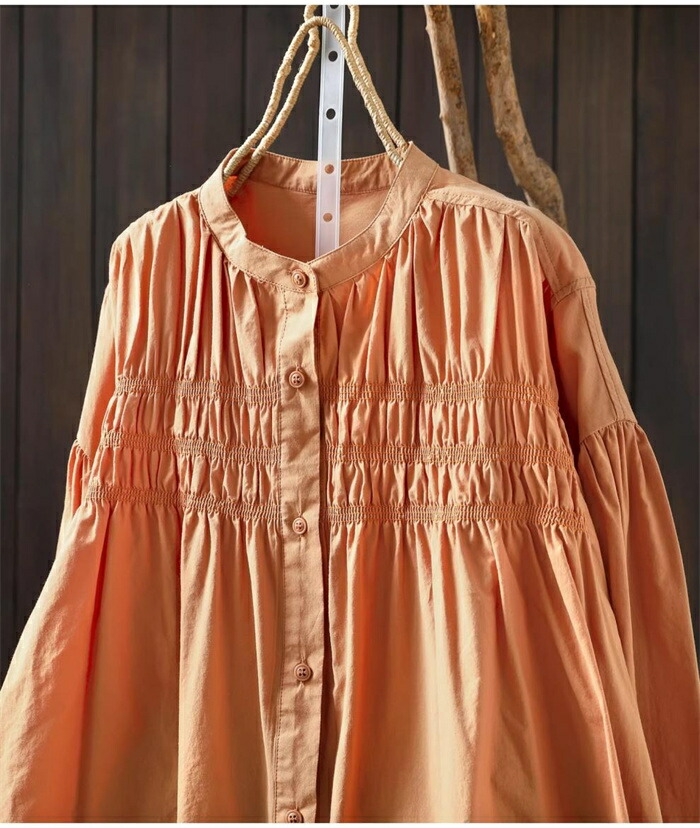 ボリューム袖 シャツ 綿 ブラウス 春 レディースファッション 続々登場 ピンク ホワイト ブルー オレンジ