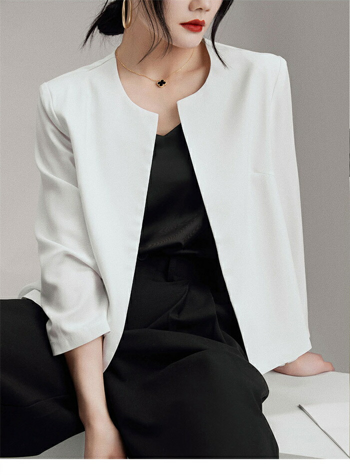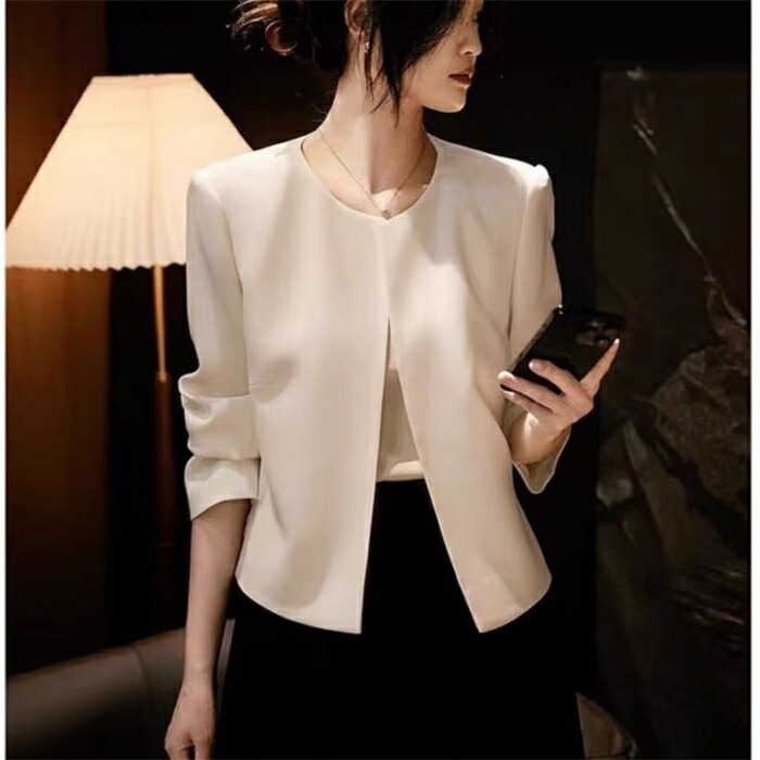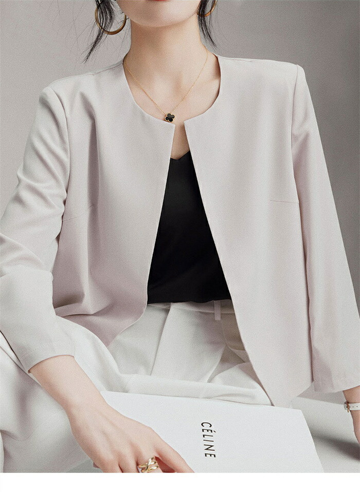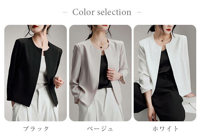 ノーカラー ジャケット レディース テ レディースファッション 続々入荷中 ホワイト ブラック ベージュ M L XL 2XL 3XL