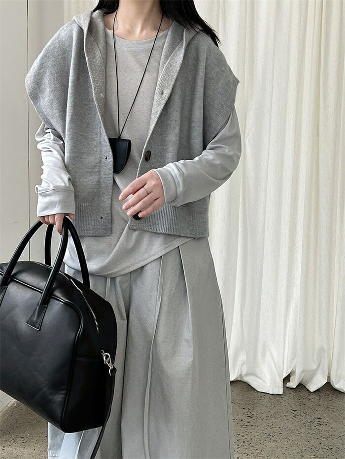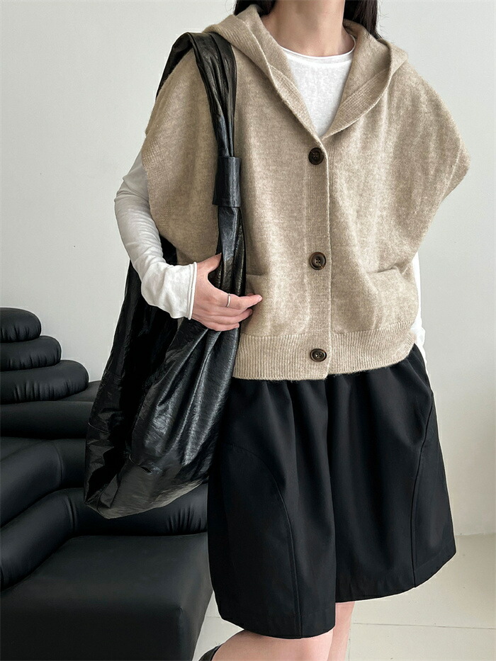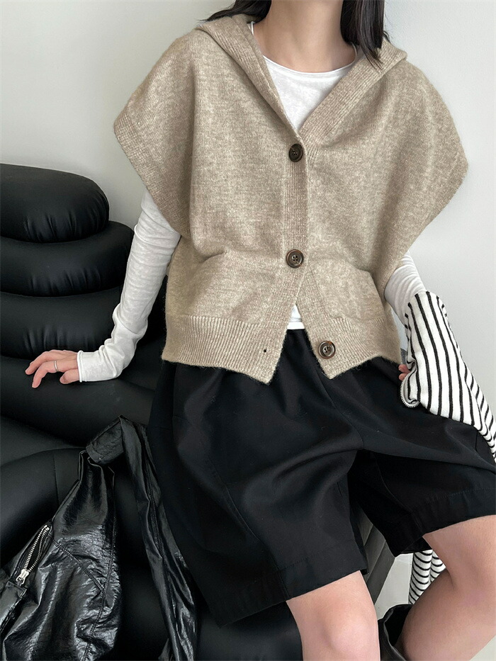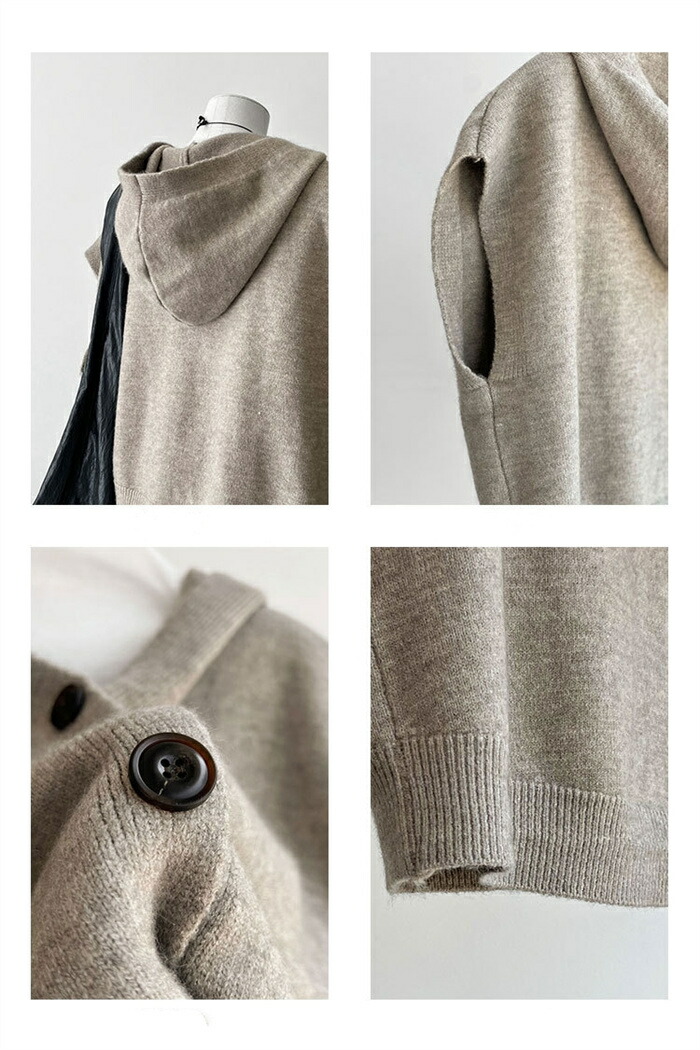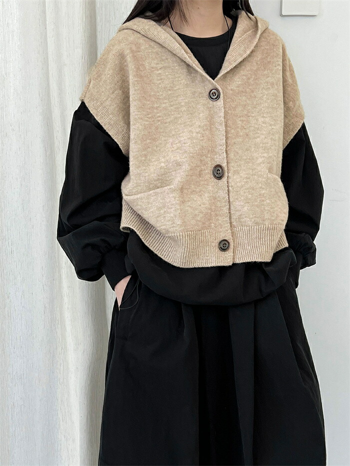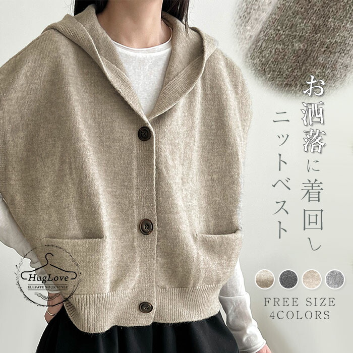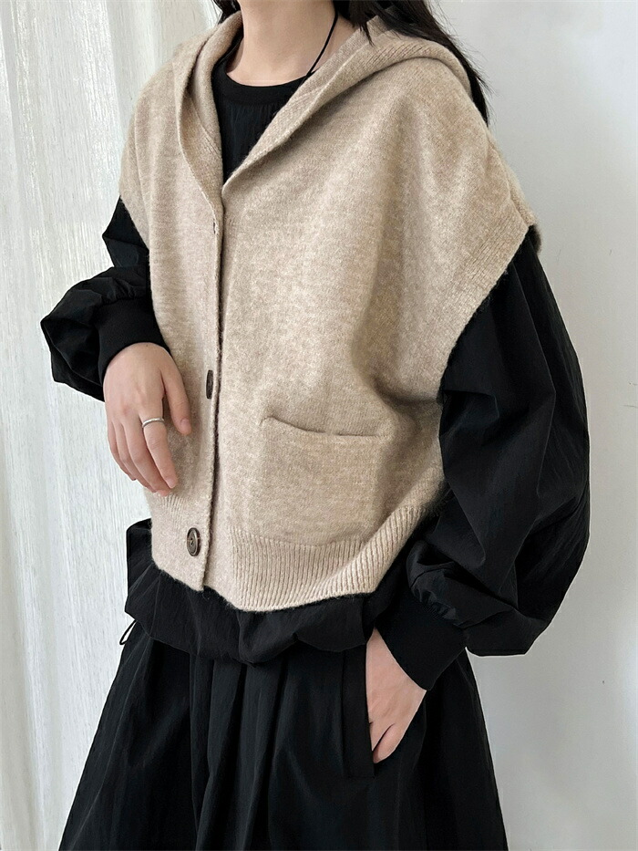 ベスト フード付き レディース ニット トップス ベスト 豊富 ライトグレー ダークグレー ベージュ キャメル