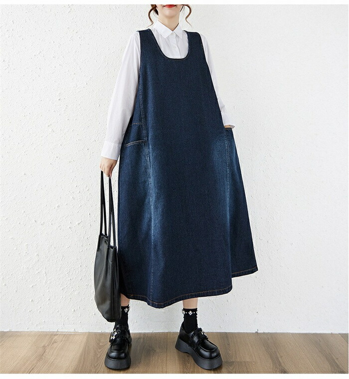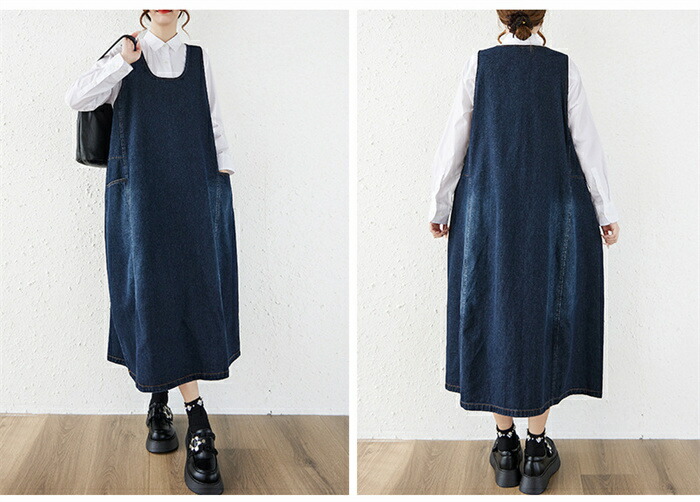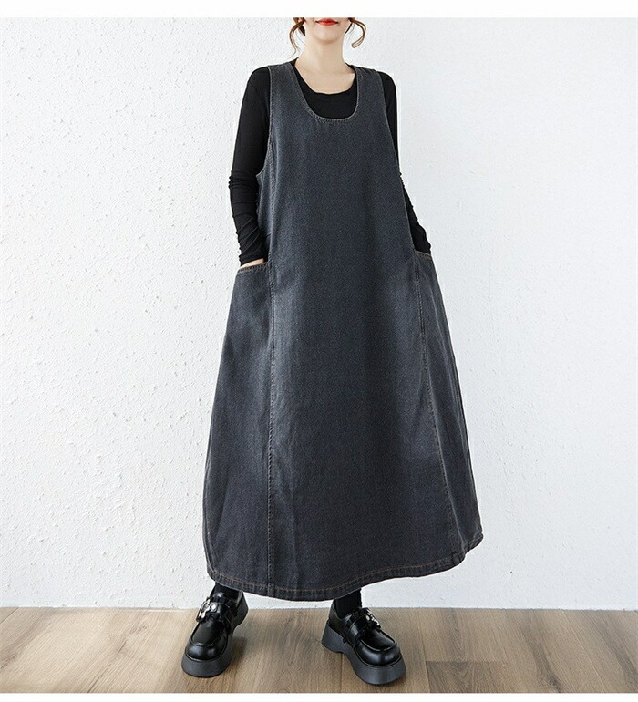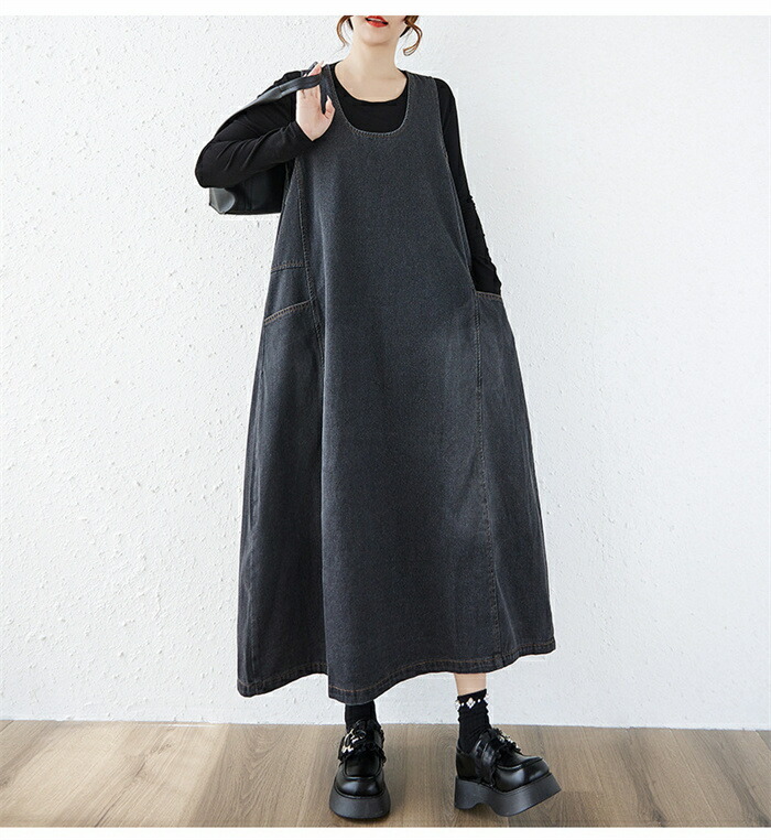 ジャンパースカート デニム サロペット ブルー ブラック L XL 2XL