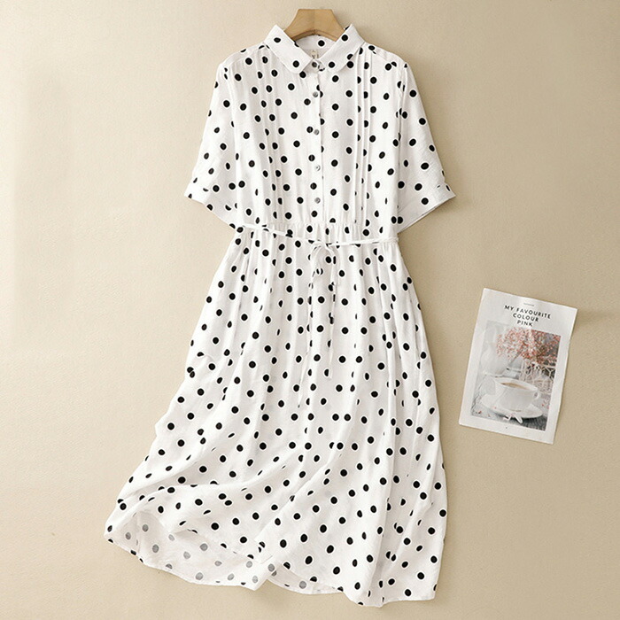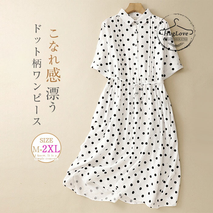 ワンピース レディース 春 ドットワン レディースファッション 超目玉商品 M L XL 2XL