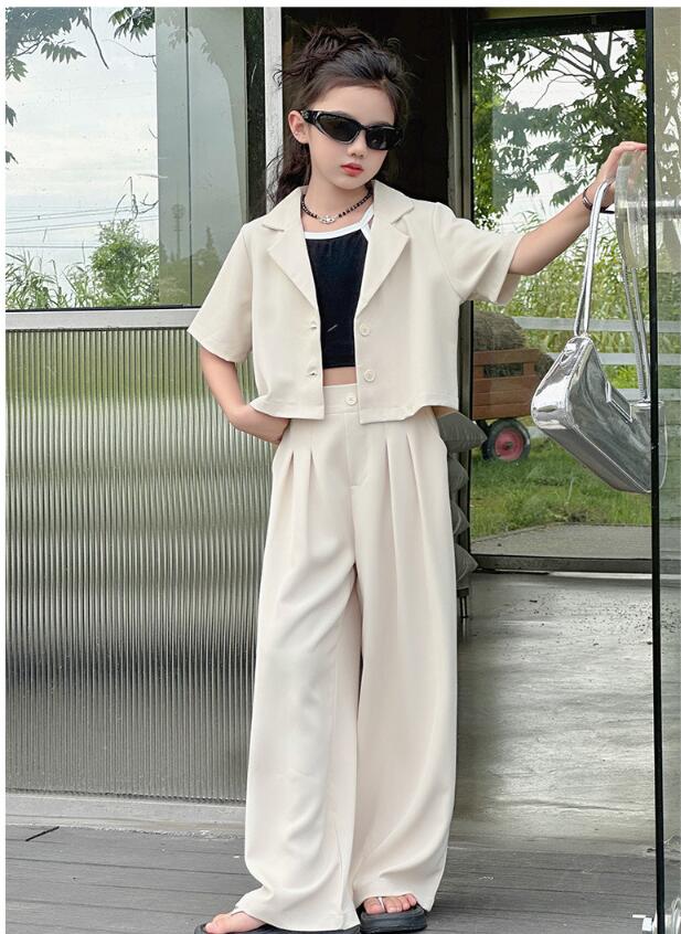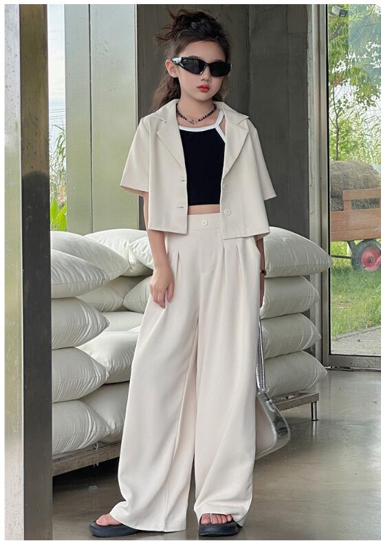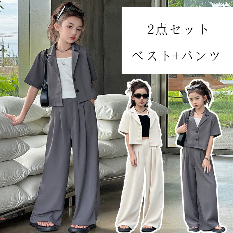 おしゃれ 女の子スーツ お揃い 卒業式 キッズ スーツ カジュアルセットアップ カジュアルパンツセット 続々登場 2点セット(ベージュ) 2点セット(グレー) 120 130 140 150 160 170